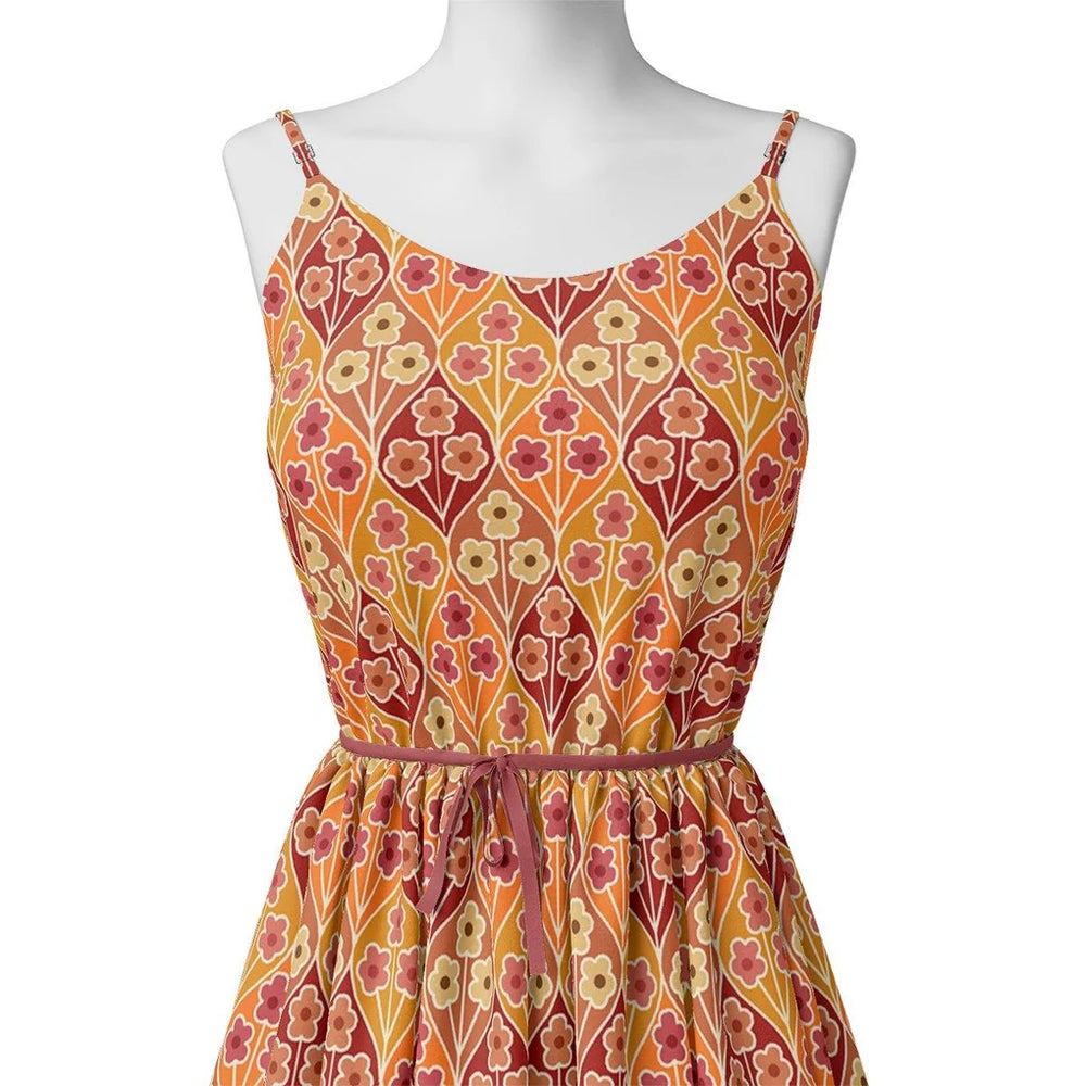 Botanical Red And Orange Floral Flower Digital Printed Fabric - Pure Georgette