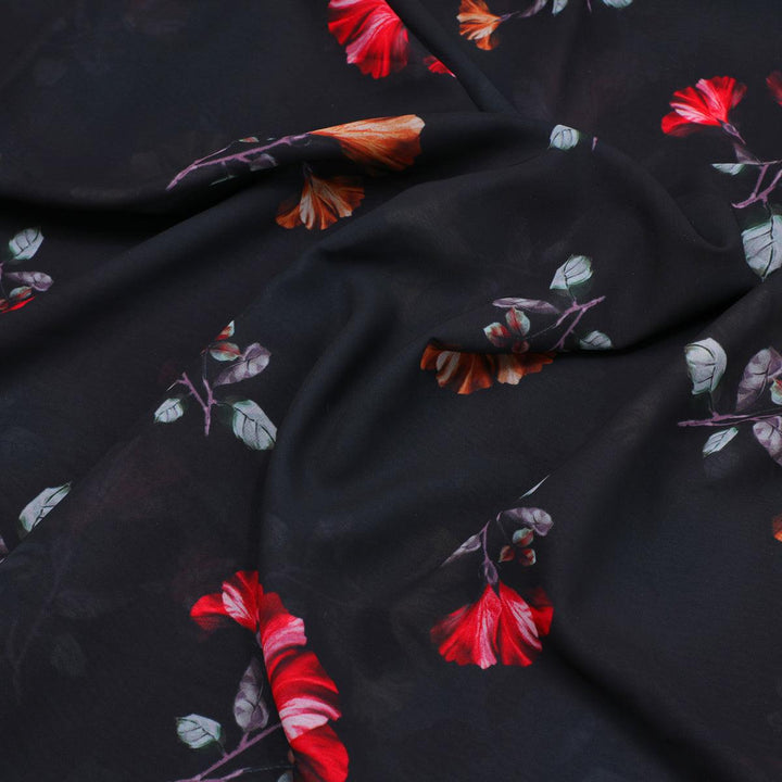 Looking for a lightweight, modern and stylish fabric for your next project? Look no further than FAB VOGUE Studio's Morden Red Iris With Golden Floral Weightless Digital Printed Fabric. Crafted from premium quality polyester, this fabric is lightweight and perfect for creating clothing, quilts, and other projects. The black fabric features a ditsy pattern, giving it a modern and chic look. Make your next project stand out with this weightless digital printed fabric from FAB VOGUE Studio.