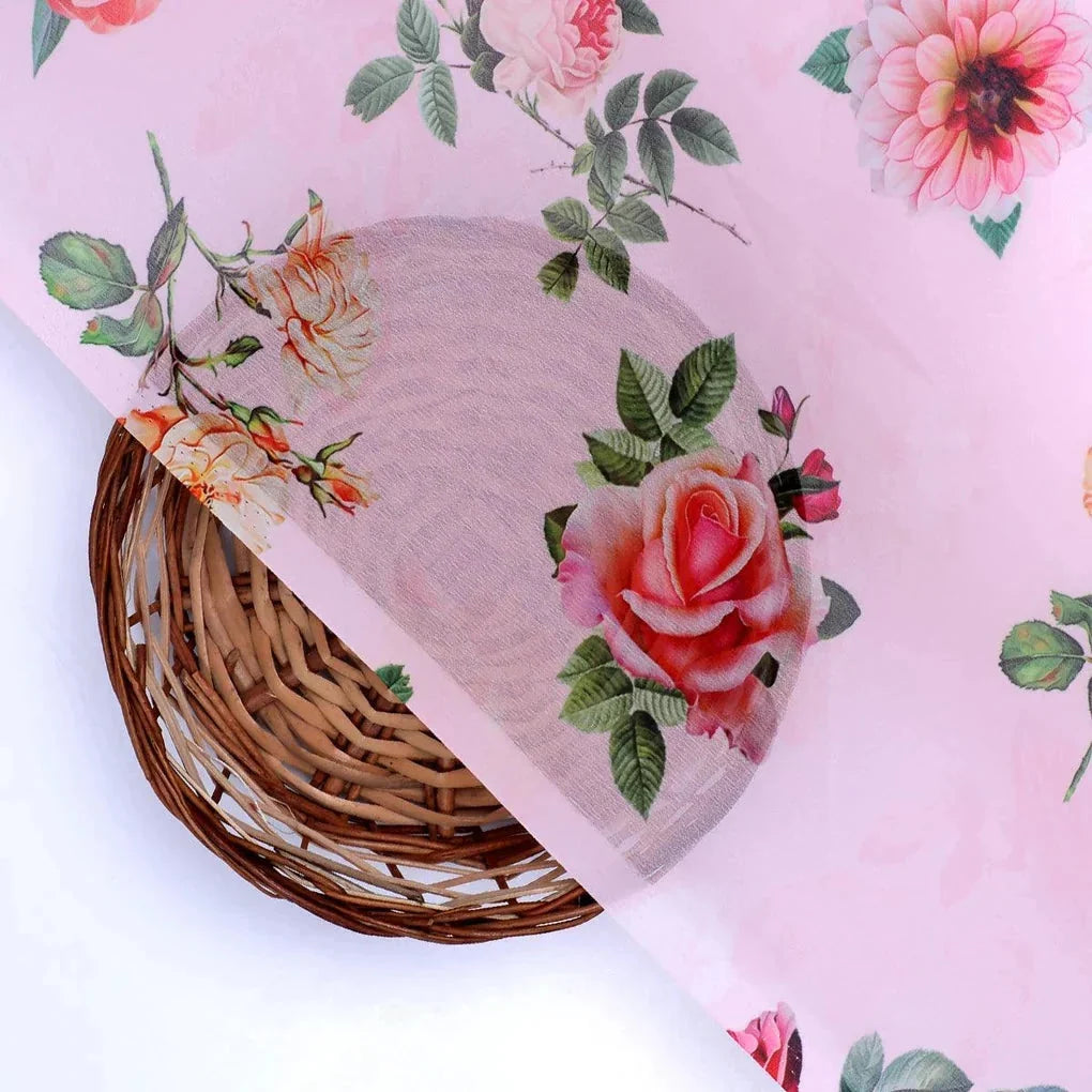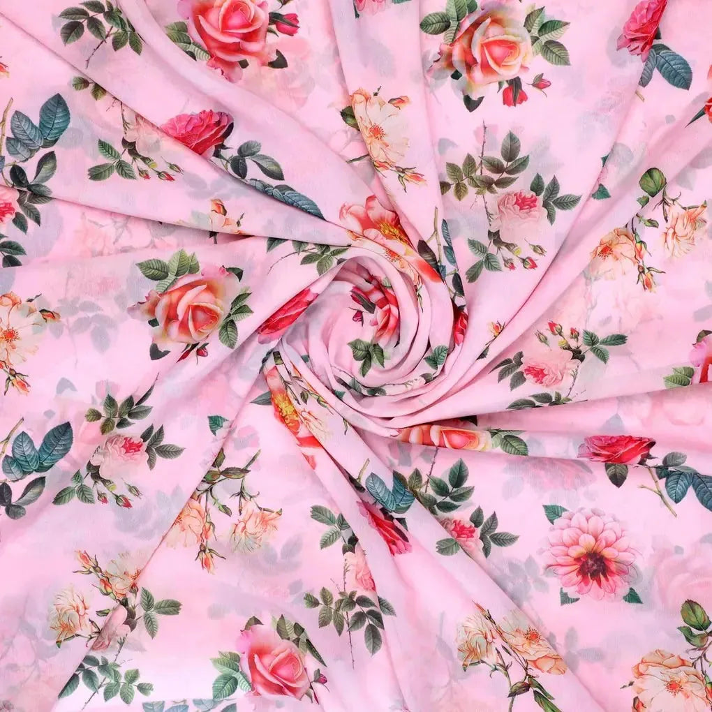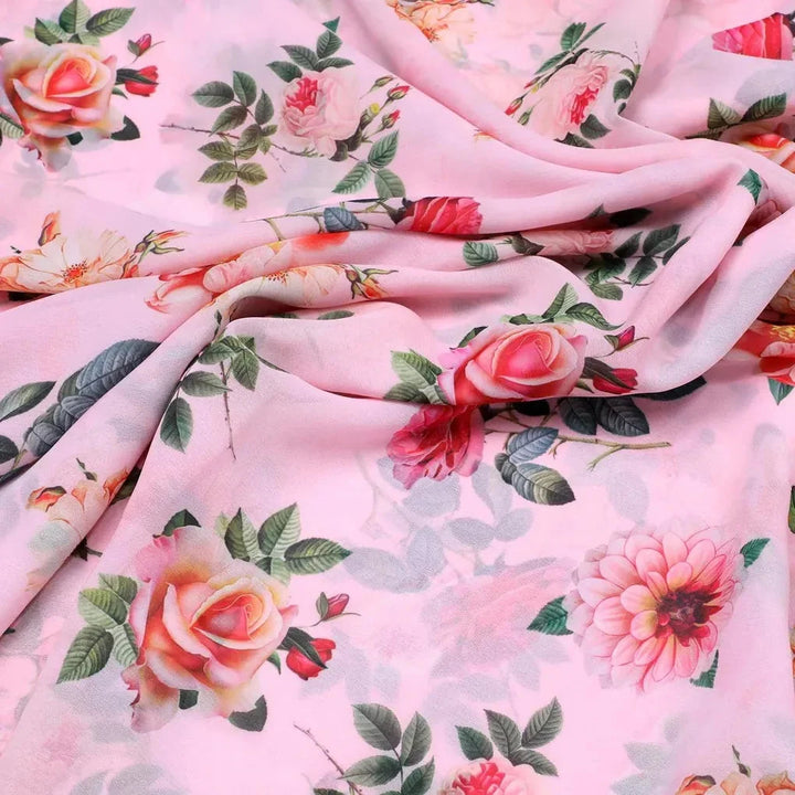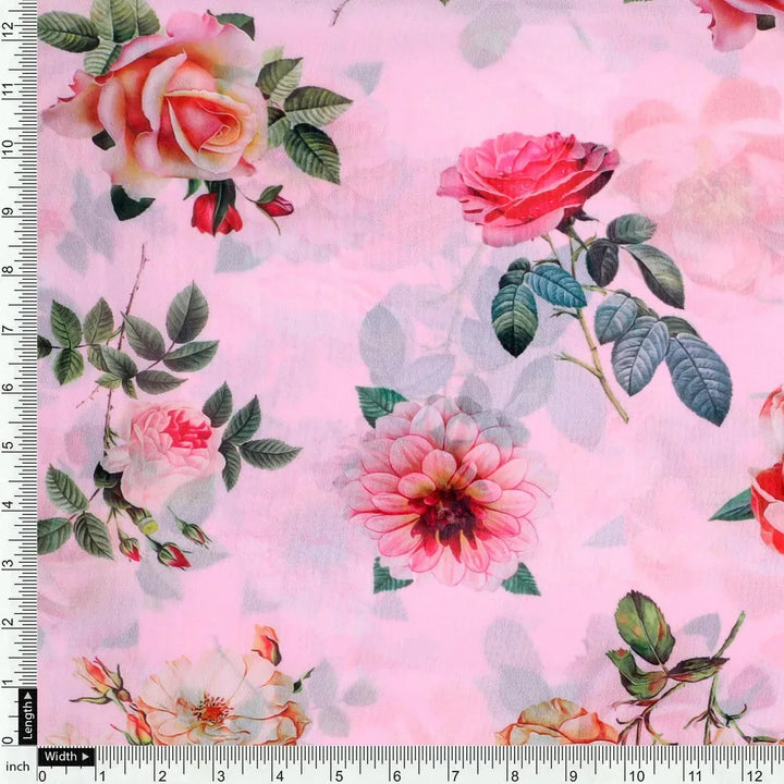 Pink And Peach Roses Allover Digital Printed Fabric - Weightless