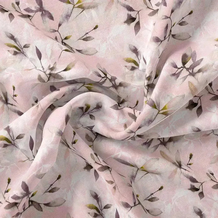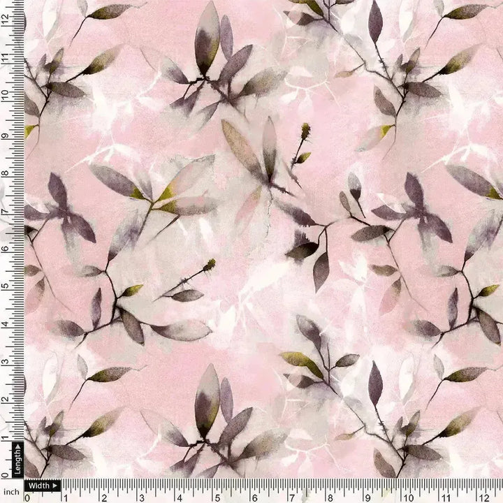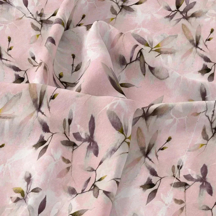 Pinkish Thin And Light Leaves Digital Printed Fabric - Weightless