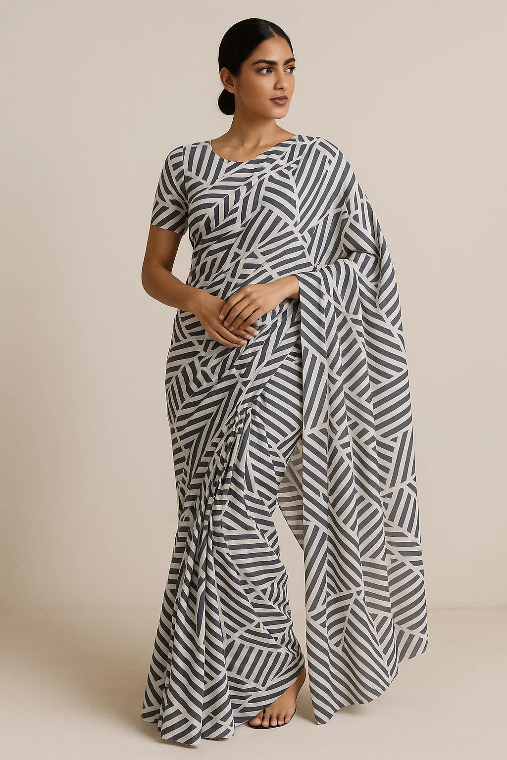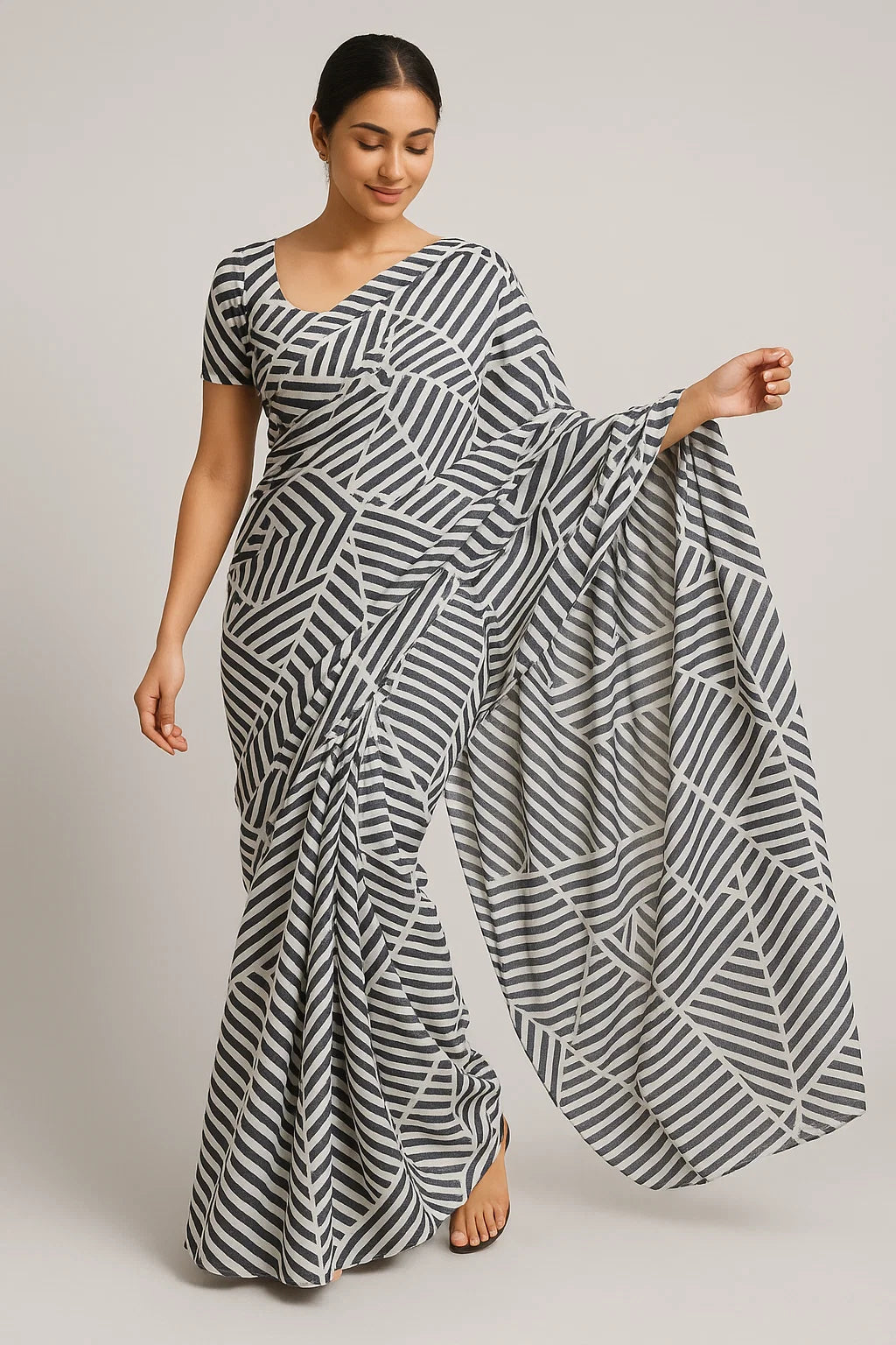 Are you looking for an attractive black strips with bone colour weightless saree printed fabric? Look no further than FAB VOGUE Studio. Our polyester fabric is lightweight and comfortable, perfect for creating a variety of garments. With its vibrant colors, this fabric is perfect for creating stylish and fashionable garments. Whether you are looking for a saree, blouse, skirt, or dupatta, this fabric will make your garment stand out. Shop now and get the perfect fabric for your next project.