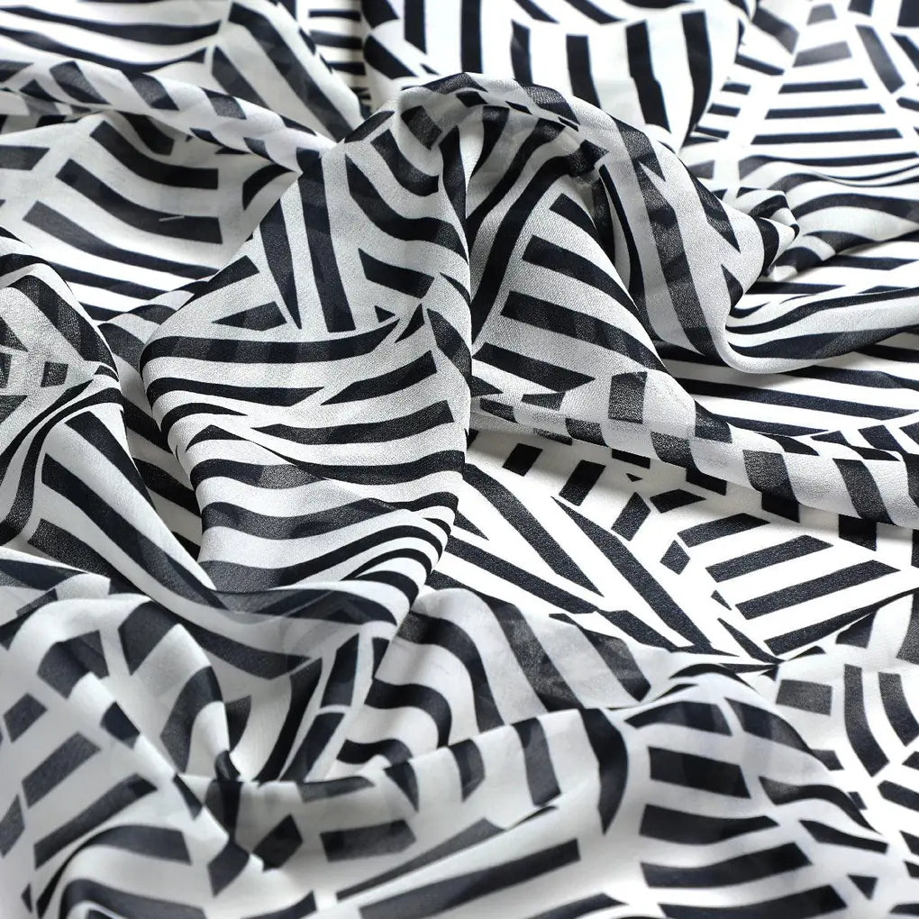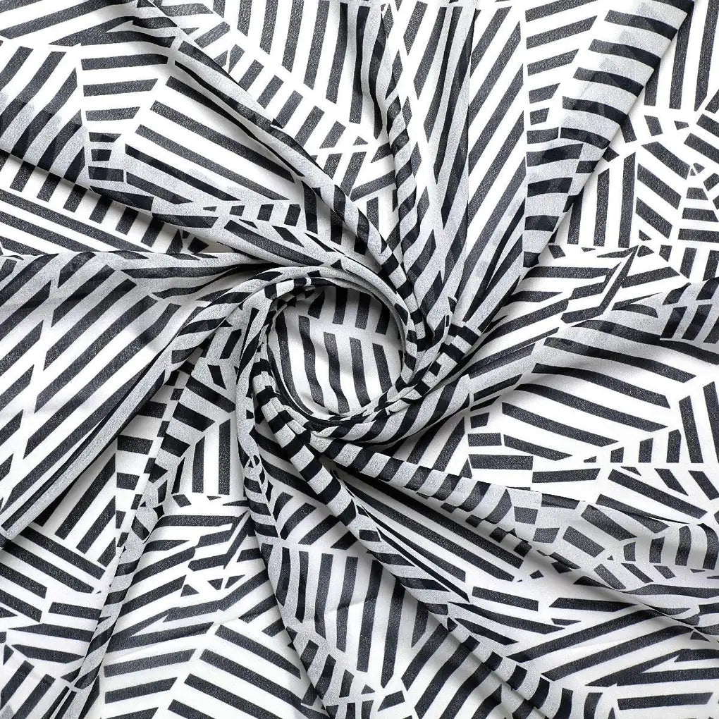 Attractive Black Strips With Bone Colour Digital Printed Fabric - Weightless – we 0 ta0078 110 attractive black strips with bone colour digital printed fabric weightless 1