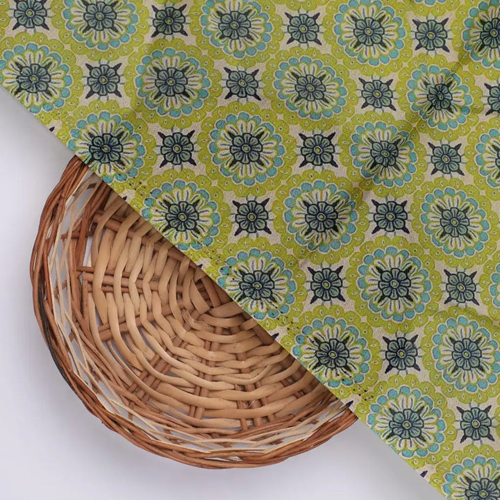 Attractive Tiny Green Link Flower Digital Printed Fabric - Pure Muslin