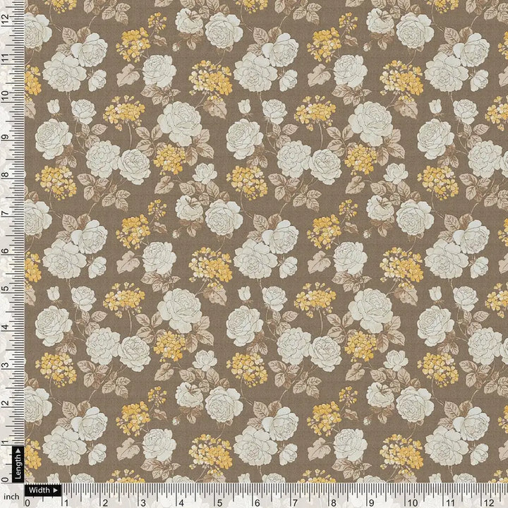Beautiful Floral Vine Over Brown Base Digital Printed Fabric