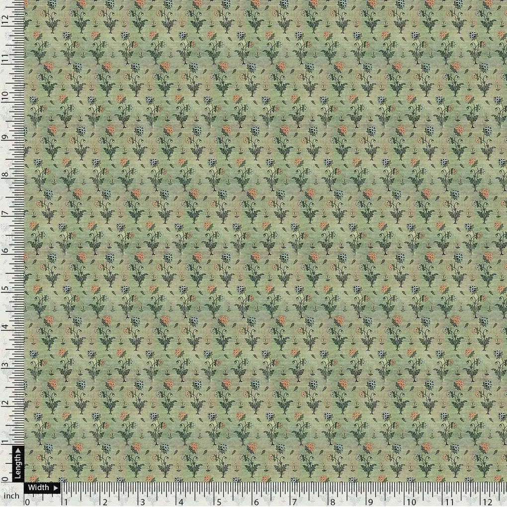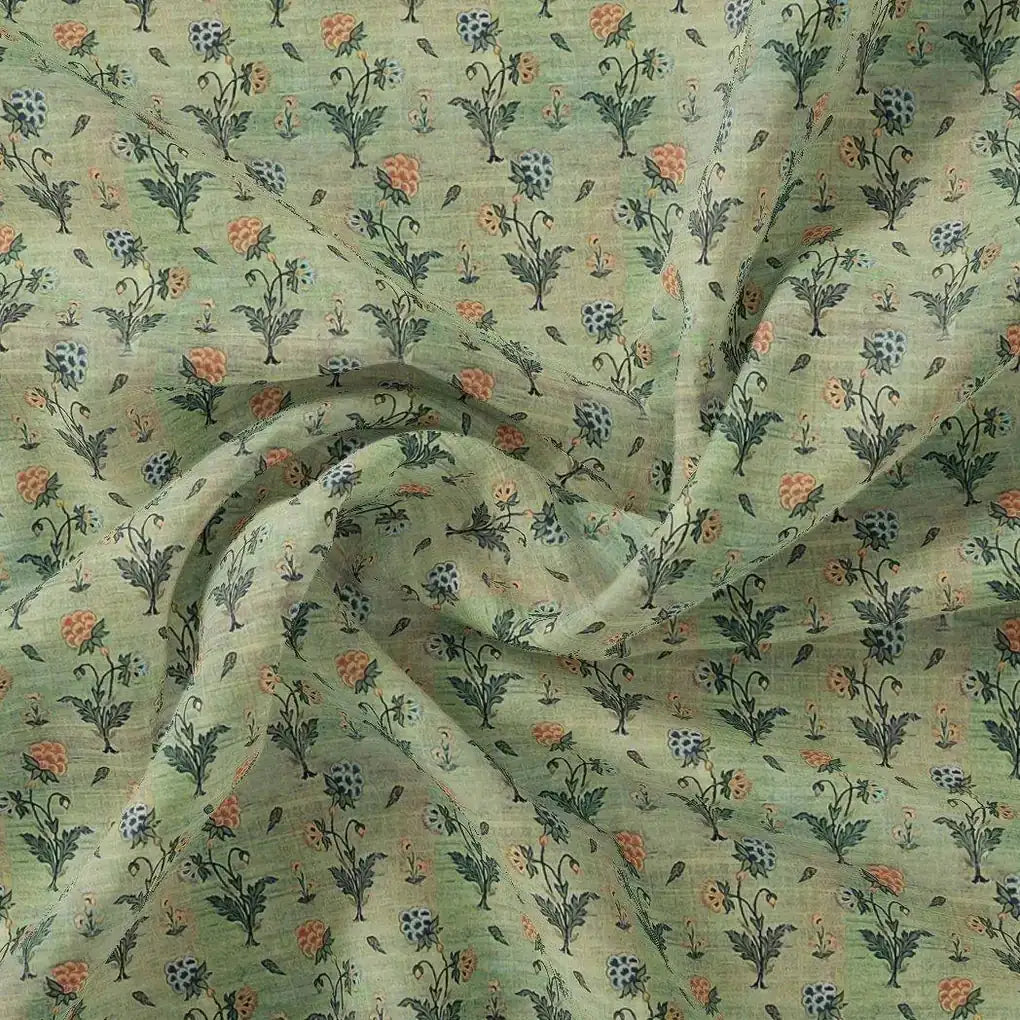 Beautiful Green Seamless Motif Flower Digital Printed Fabric - Rayon