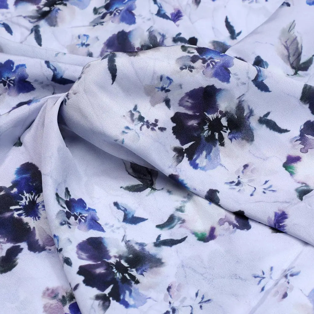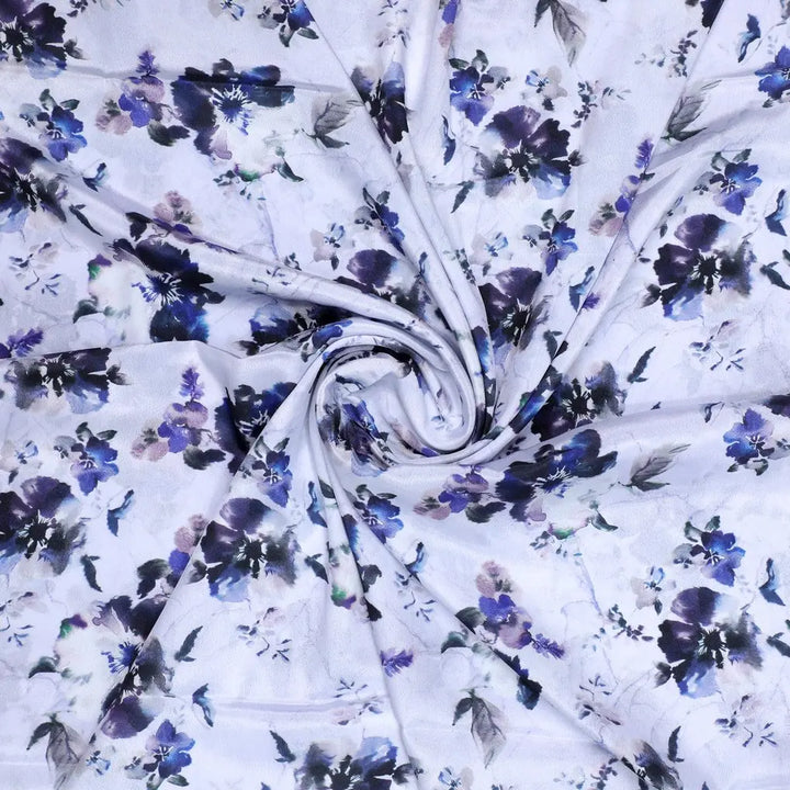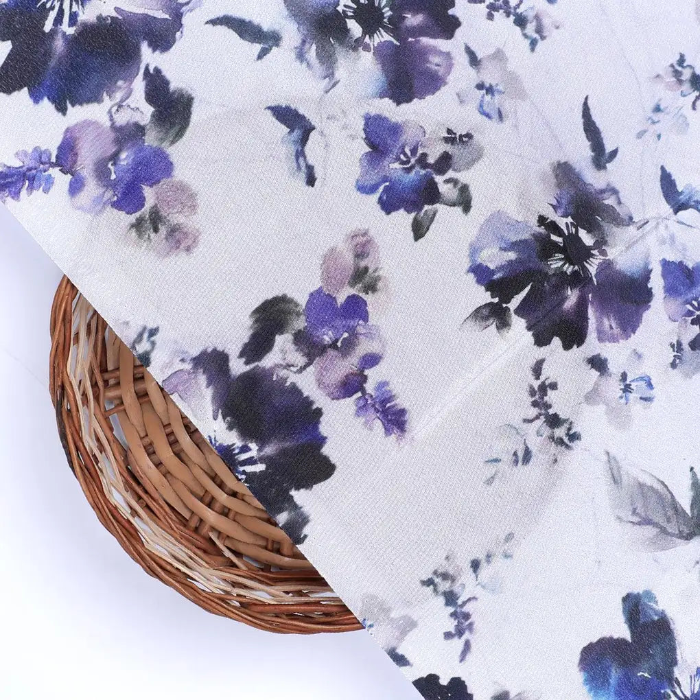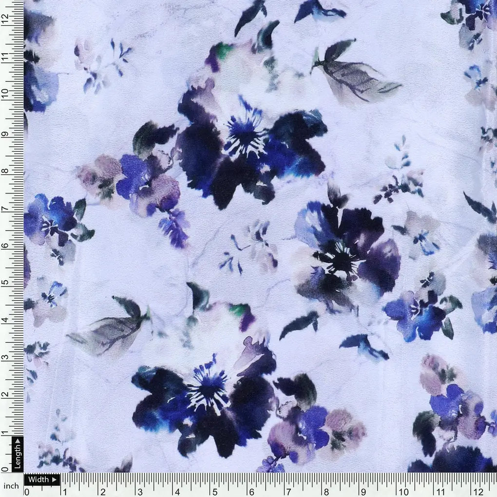 Beautiful Pansy Blue Flower Digital Printed Fabric - Crepe