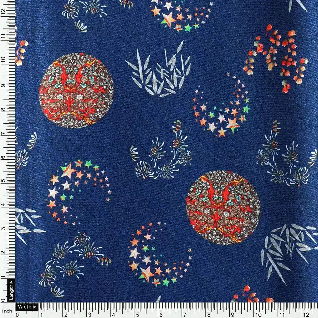 Beautiful Quirky Pattern over Blue Base Digital Printed Fabric