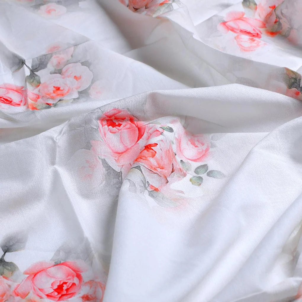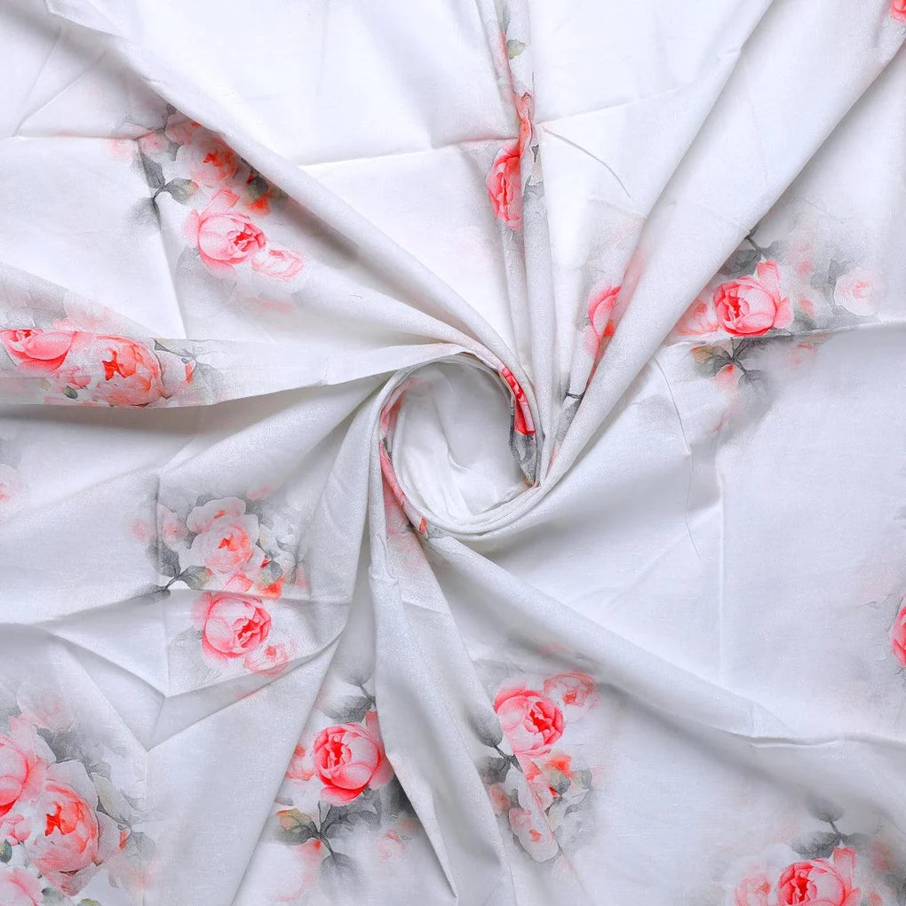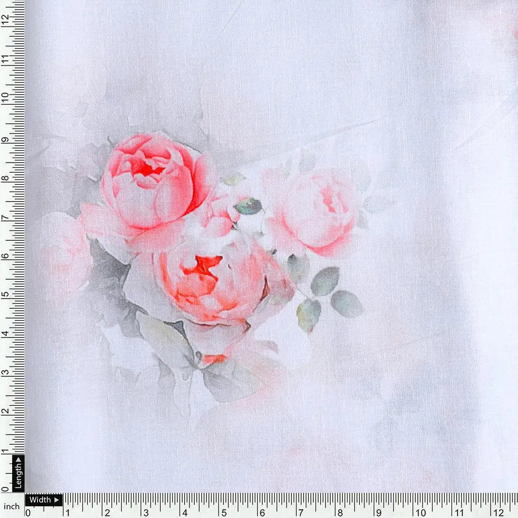 Beautiful Summer Peony Bunch Digital Printed Fabric - Pure Cotton