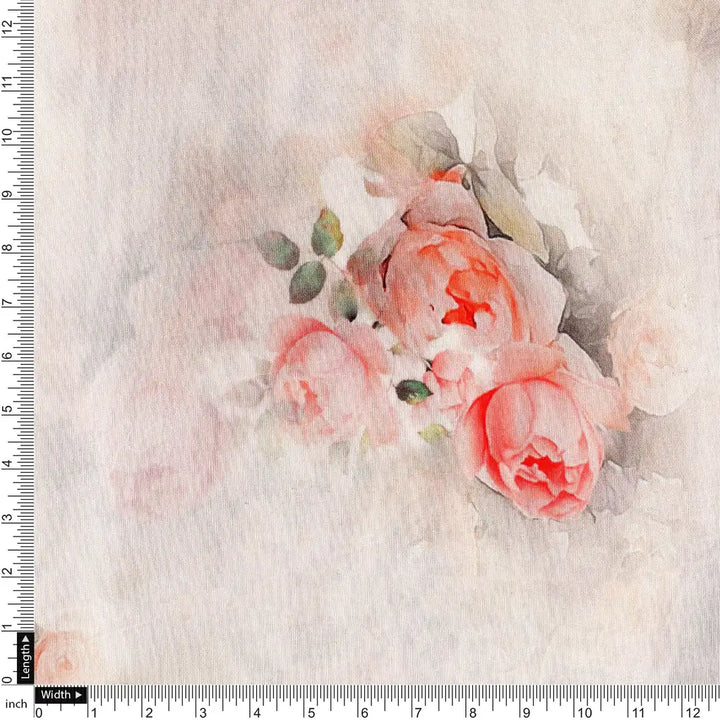 Beautiful Summer Peony Bunch Digital Printed Fabric - Pure Muslin