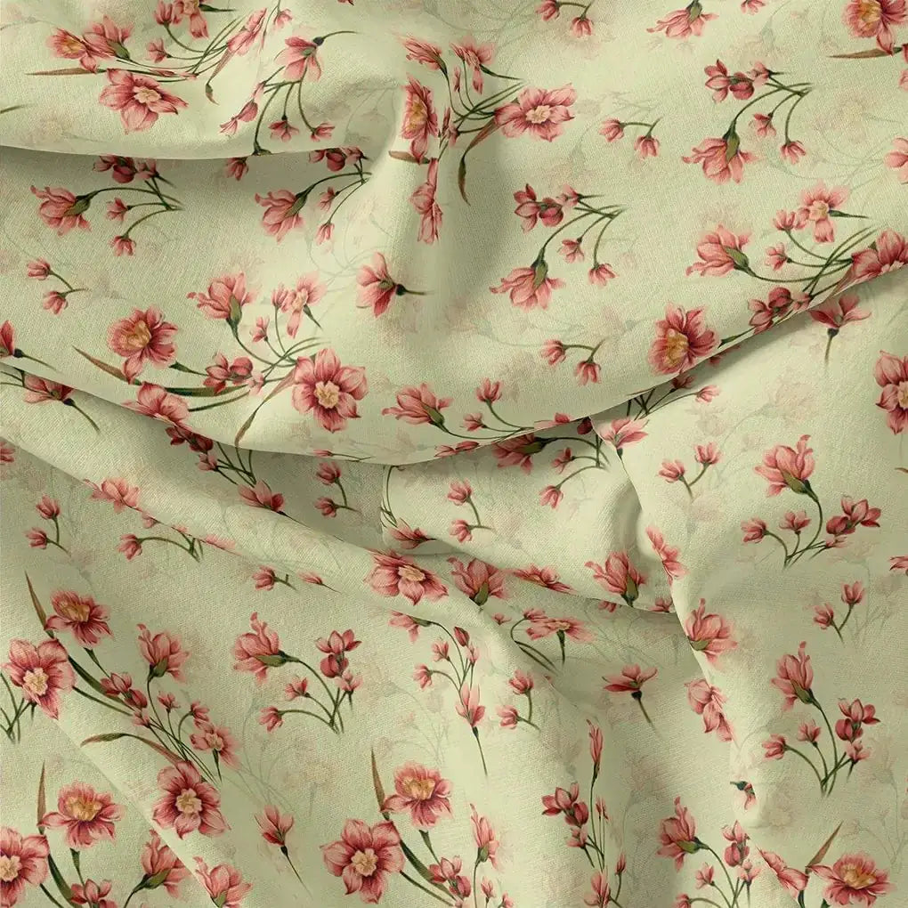 Introducing the Beautiful Tiny Pink Chintz Kota Doria Clothing Printed Fabric from FAB VOGUE Studio! This digital printed fabric is crafted from high-quality polyester and Kota Doria fabric to give you a soft and luxurious feel. The fabric features a beautiful green floral pattern that will bring a unique touch to any garment. Whether you're creating a special occasion dress or a casual blouse, this fabric is perfect for any project. With its vibrant colors and eye-catching design, this fabric is sure to make a statement. Add a touch of elegance and style to your wardrobe with the Beautiful Tiny Pink Chintz Kota Doria Clothing Printed Fabric from FAB VOGUE Studio.