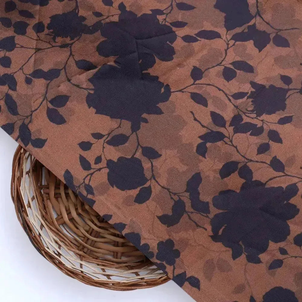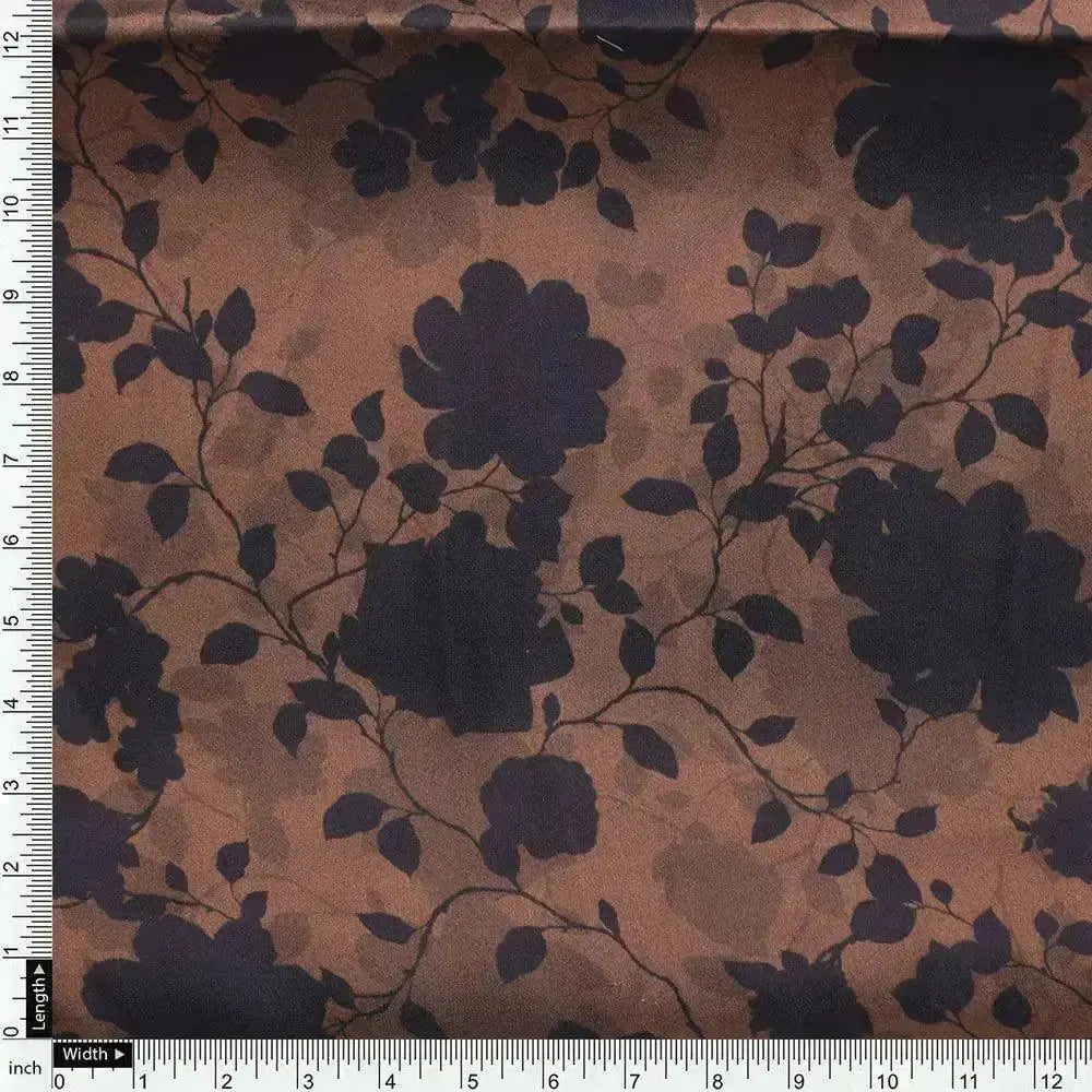 Black And Rustic Look Flower Digital Printed Fabric - Japan Satin
