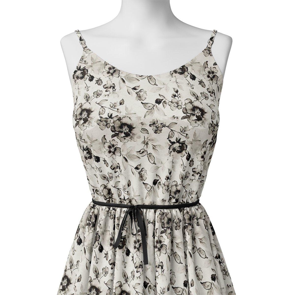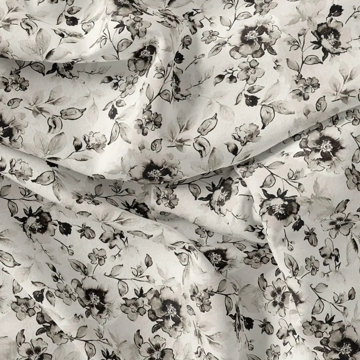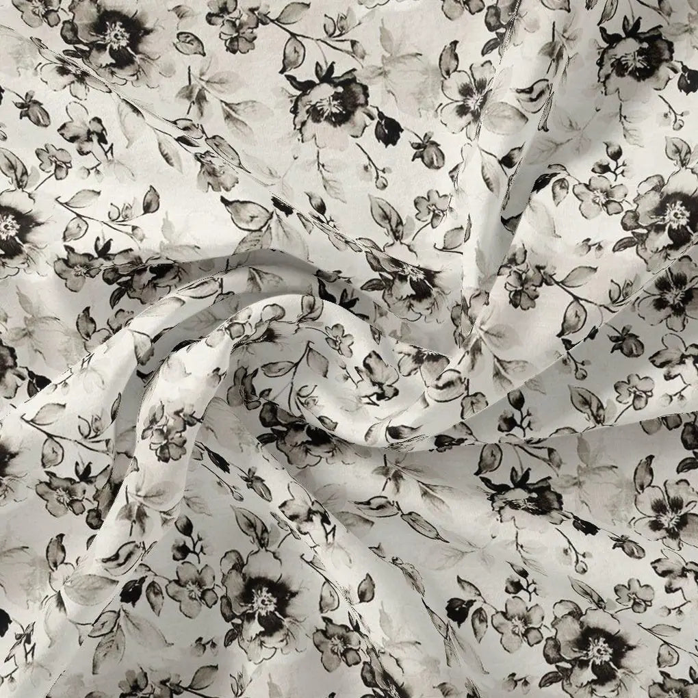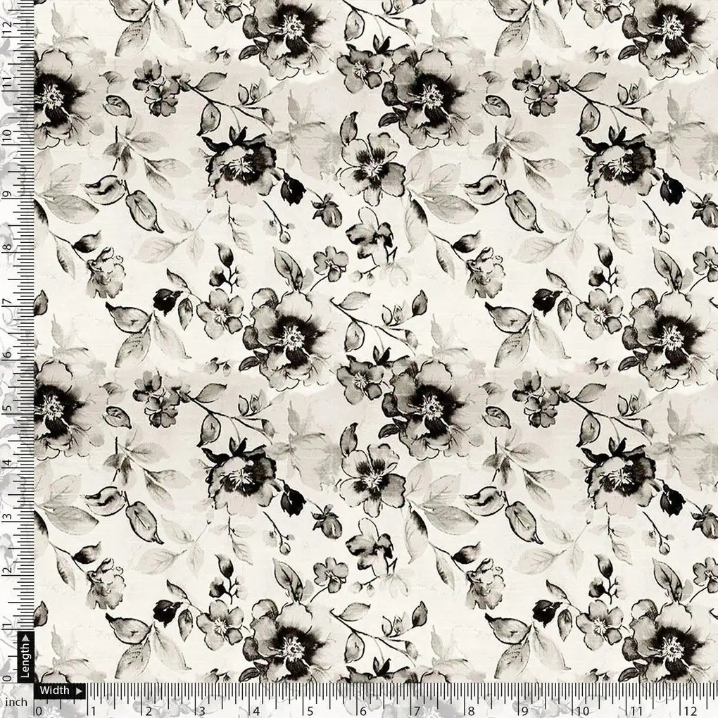 Black And White Orchid Digital Printed Fabric - Cotton