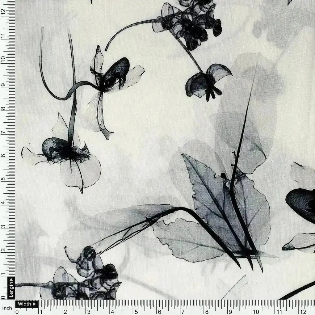 Black Floating Flowers Digital Printed Fabric - Muslin