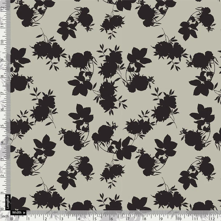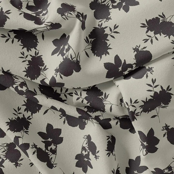 Black Floral Flower Digital Printed Fabric - Rayon