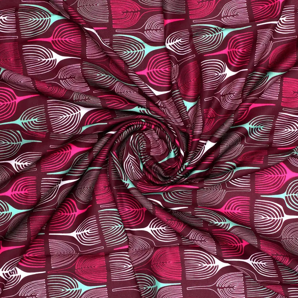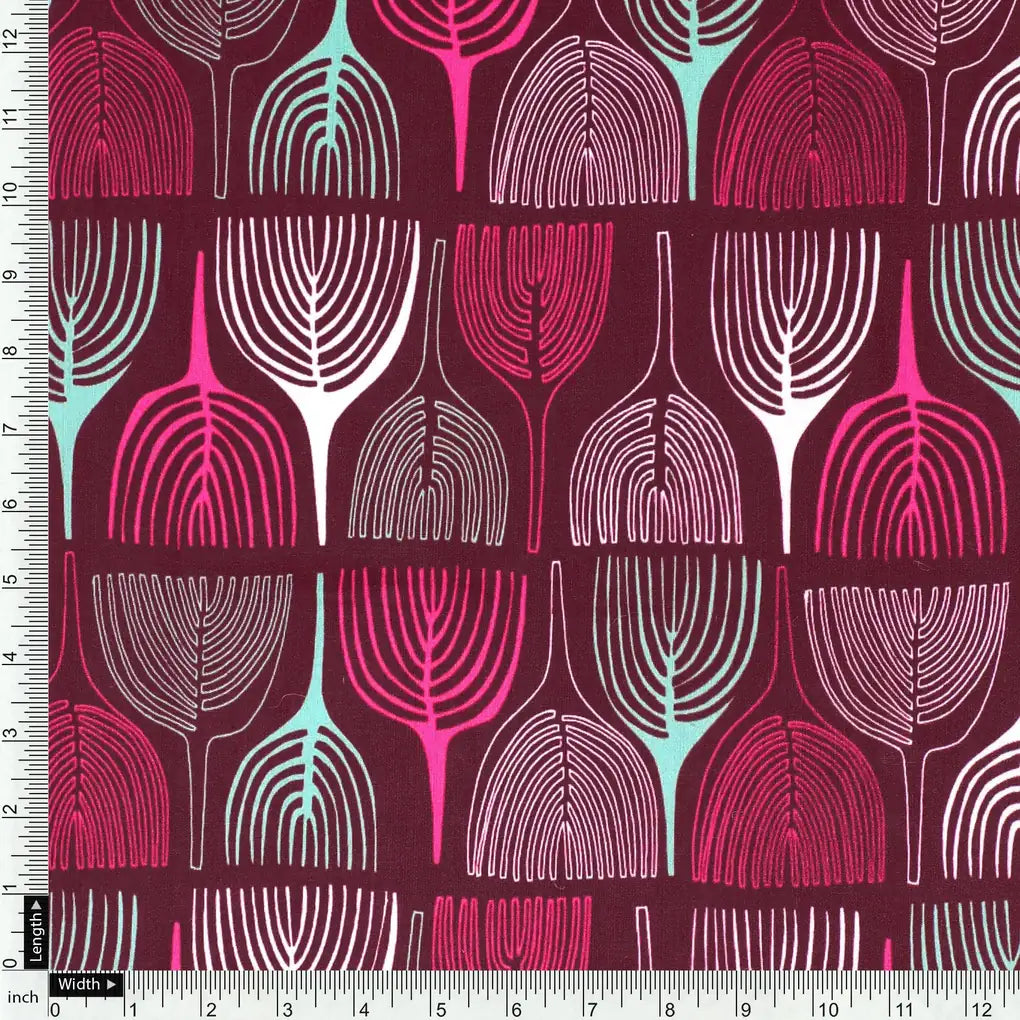 Bold Colourful Mahogany Leaf Digital Printed Fabric - Kora Silk