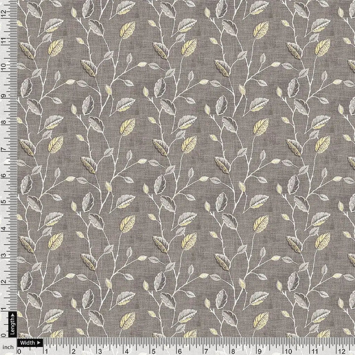 Brown Leaves With Stalk Digital Printed Fabric