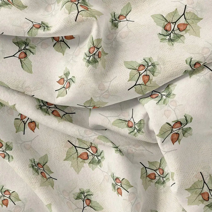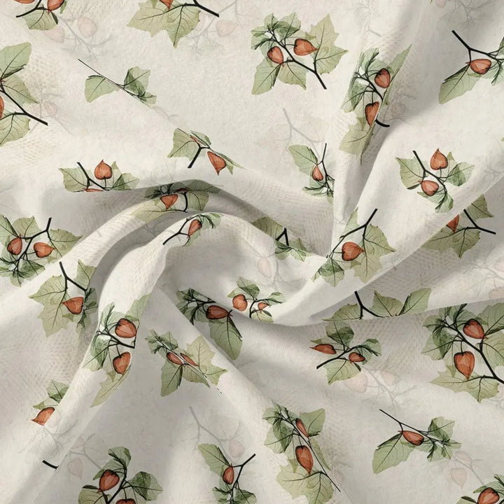 Colico Bunch Green With Orange Seads Digital Printed Fabric - Muslin