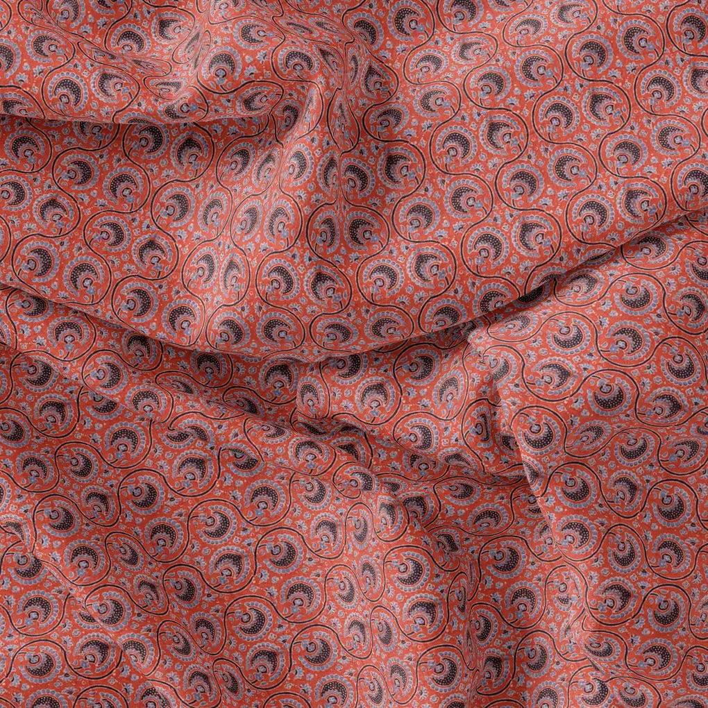 Decorative Quatrefoil With Red Flower Digital Printed Fabric - Tusser Silk