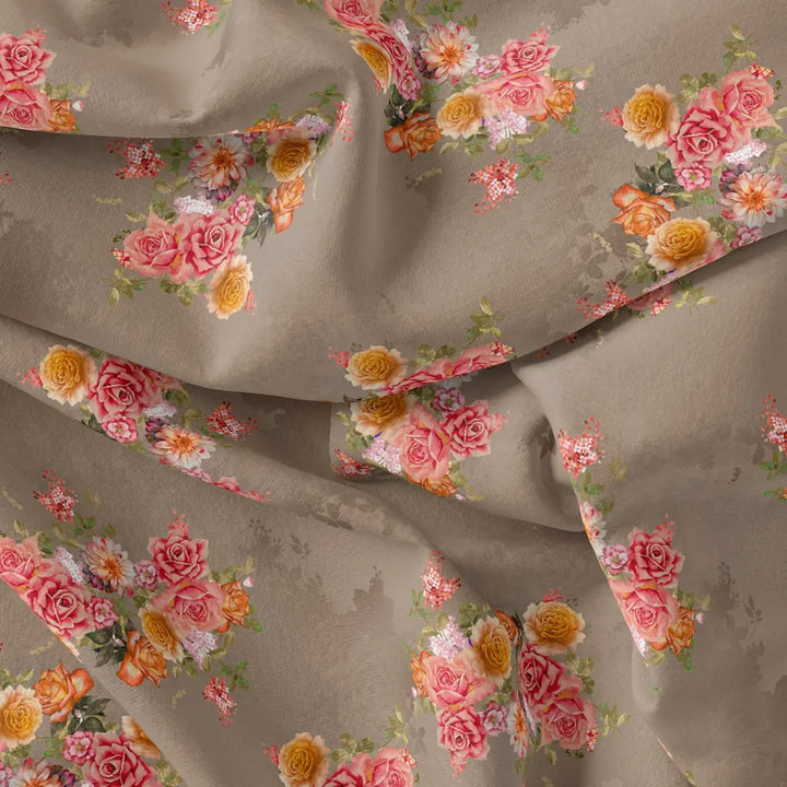 Fragrance Multitype Of Flower Digital Printed Fabric - Poly Muslin