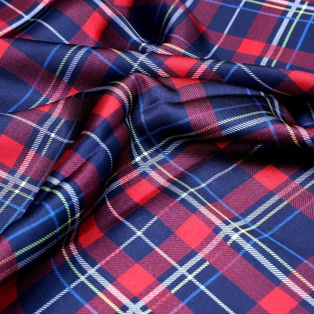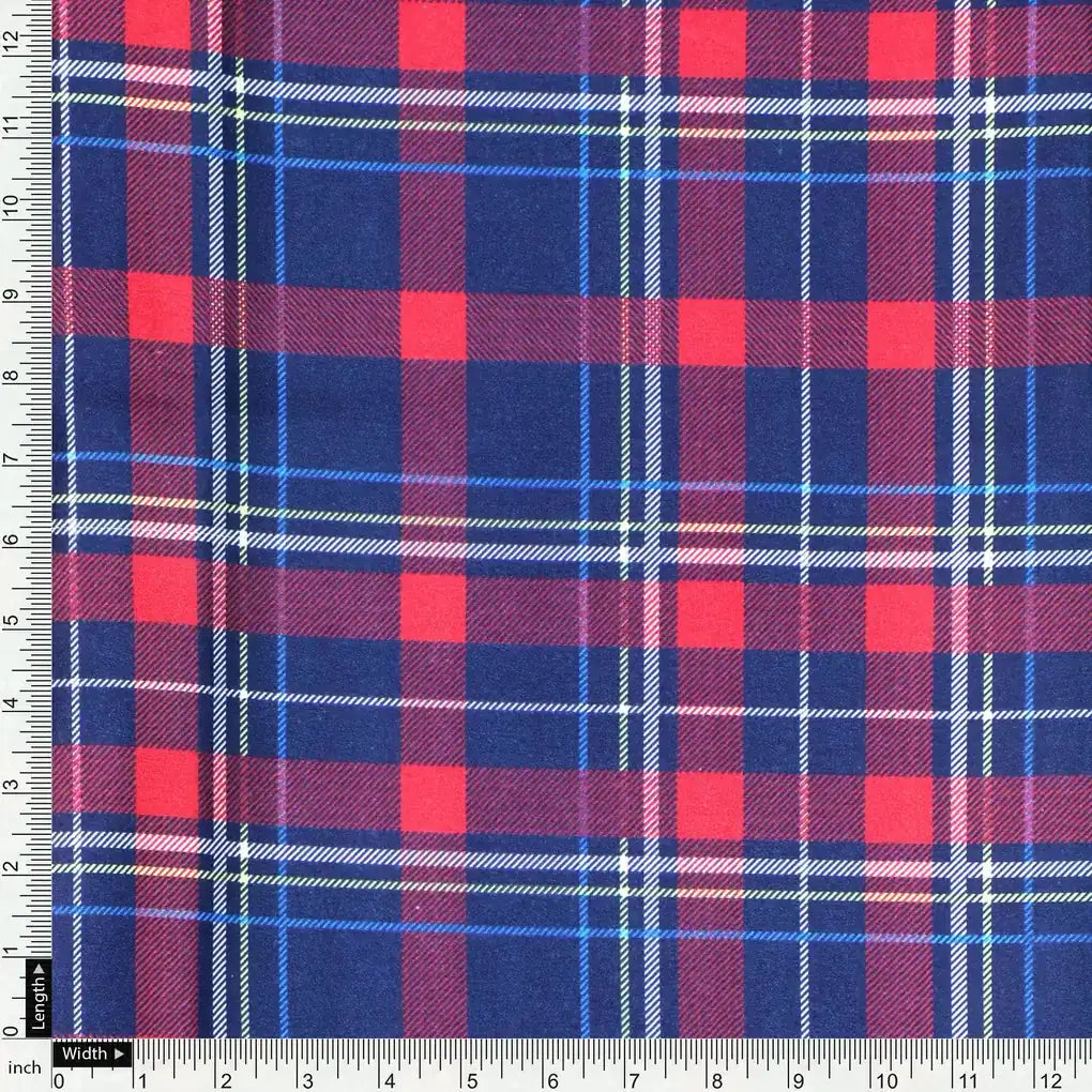 Gingham Pattern With Red And Blue Colour Digital Printed Fabric - Japan Satin