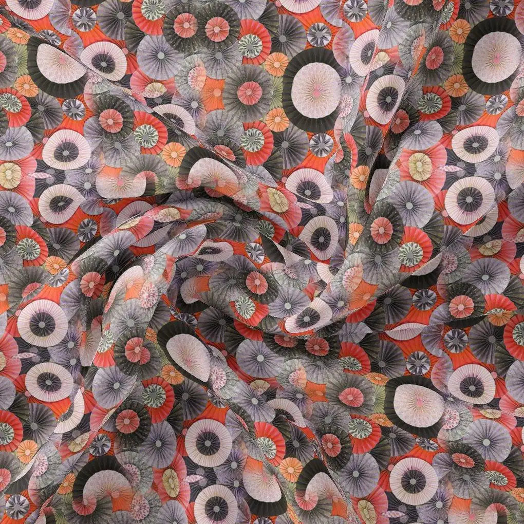 Glam Polished Multicolour Rounded Digital Printed Fabric - Pure Georgette