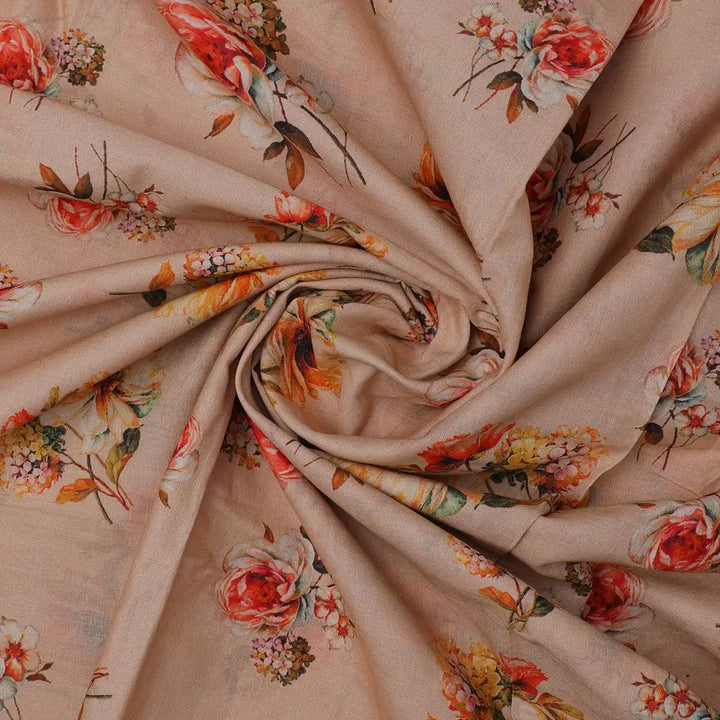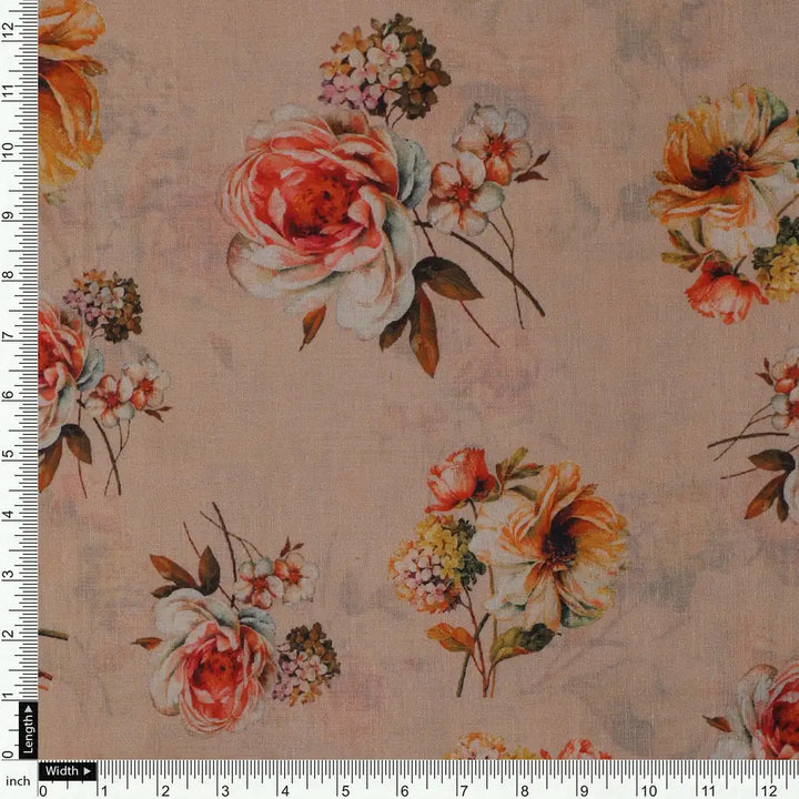 Hawaiian Zinnia Flower Roses Digital Printed Fabric - Pure Cotton