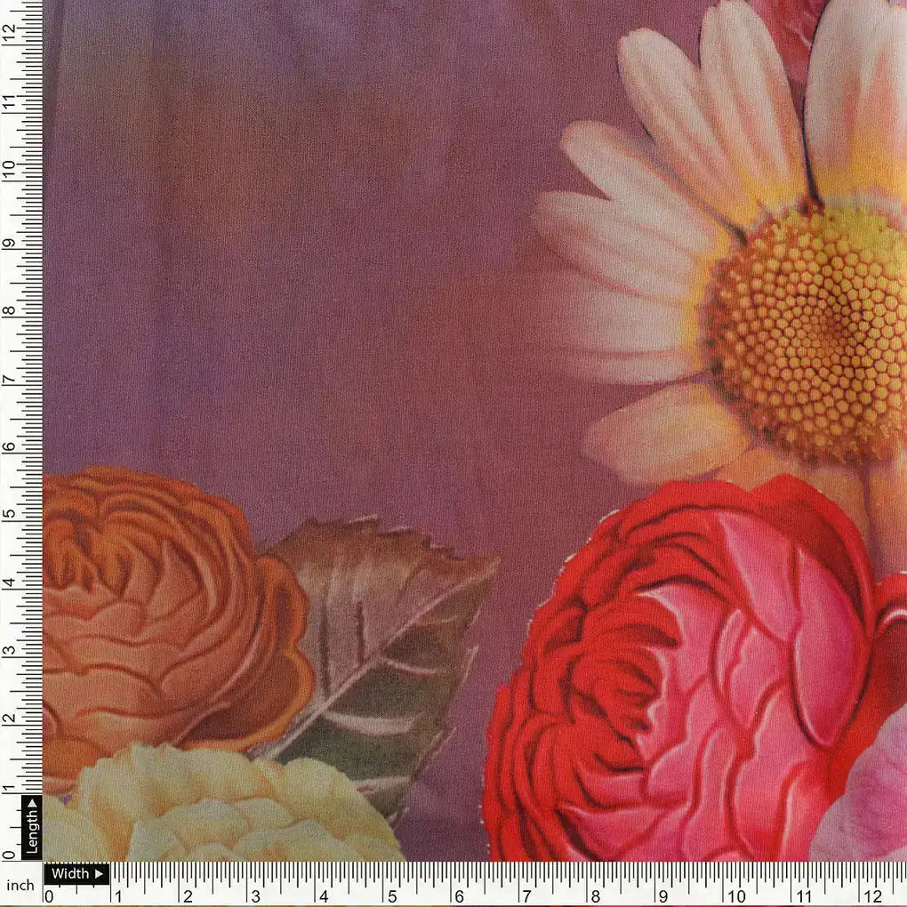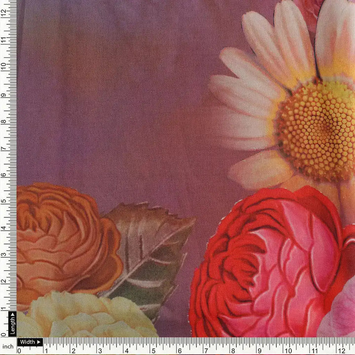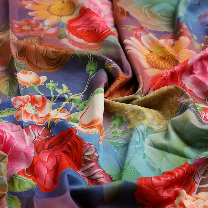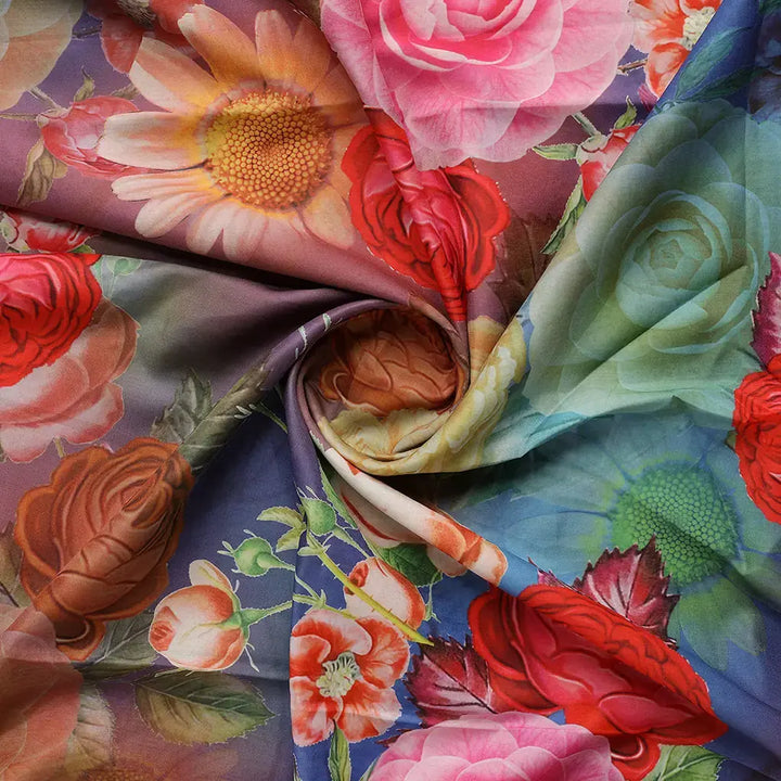 Huge Realistic Flowers Digital Printed Fabric - Kora Silk