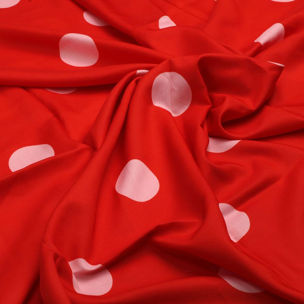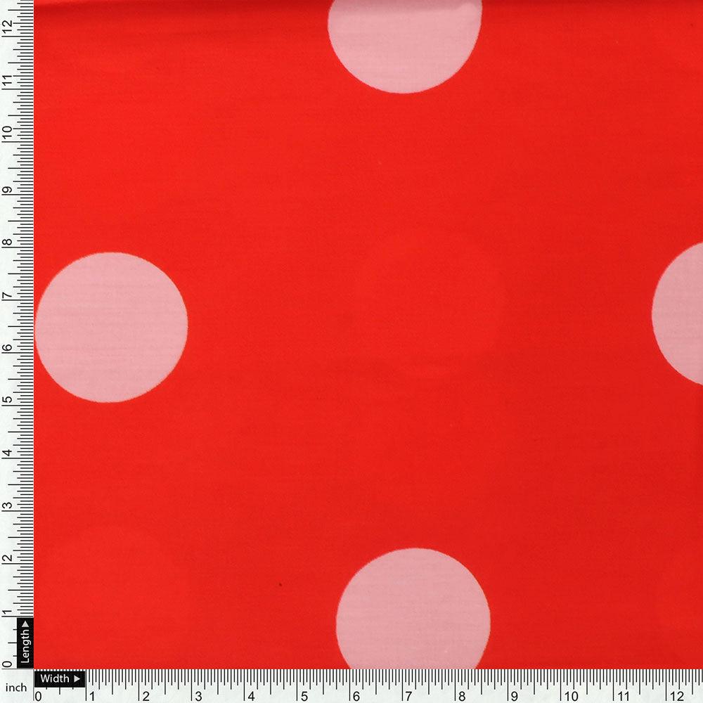 Huge Red Polka Dot Digital Printed Fabric - Kora Silk