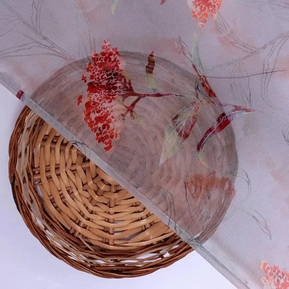 Ixora Flower With Leaves Digital Printed Fabric - Pure Georgette