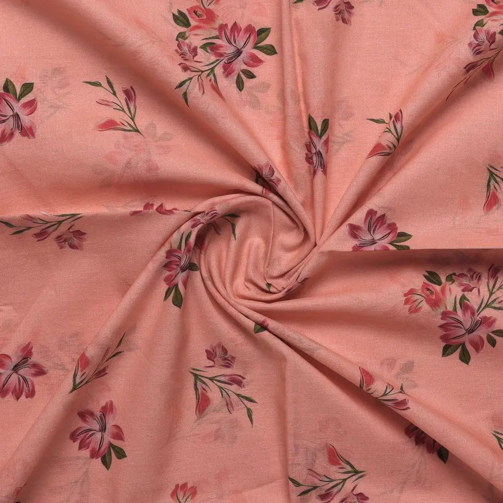 Add a touch of elegance to your wardrobe with the Lovely Pink Orchid Bunch Pure Cotton Top Printed Fabric from FAB VOGUE Studio. Made from high-quality pure cotton, this digital printed fabric features a beautiful ditsy pattern in cream color that will instantly upgrade your look. With its exquisite design, this fabric is perfect for making stylish tops, dresses, and other garments. Shop now at FAB VOGUE Studio for the best fabric selection.