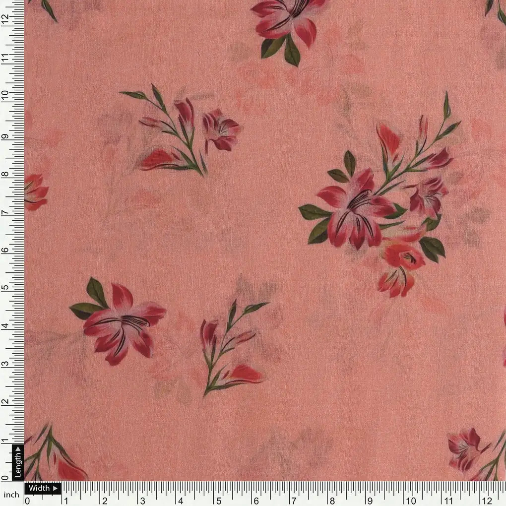 Lovely Pink Orchid Bunch Digital Printed Fabric - Pure Cotton
