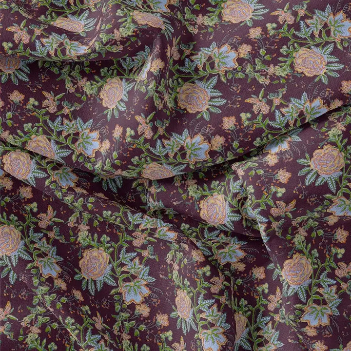 Lovely Roses Embroidery Brunch Digital Printed Fabric - Upada Silk