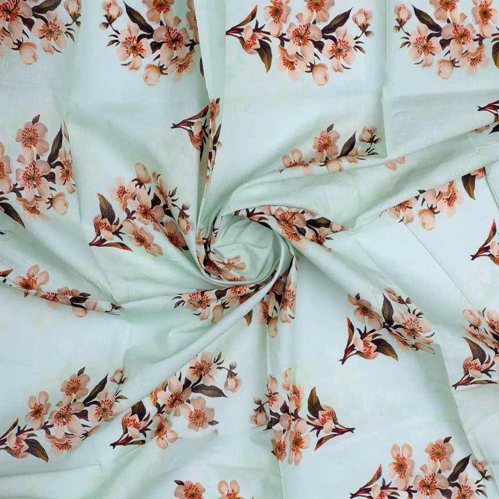 Are you looking for a pure cotton fabric with a beautiful floral print? Look no further than the Lovely Seamless Chintz Bunch Pure Cotton Unstitched Printed Fabric from FAB VOGUE Studio. The fabric is made from the highest quality pure cotton, and the green floral print is sure to make a statement. Perfect for a variety of clothing items, this fabric is sure to be a favorite for years to come.