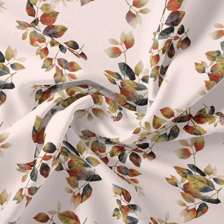 Lovely Small Goat Willow Leafs Digital Printed Fabric - Muslin