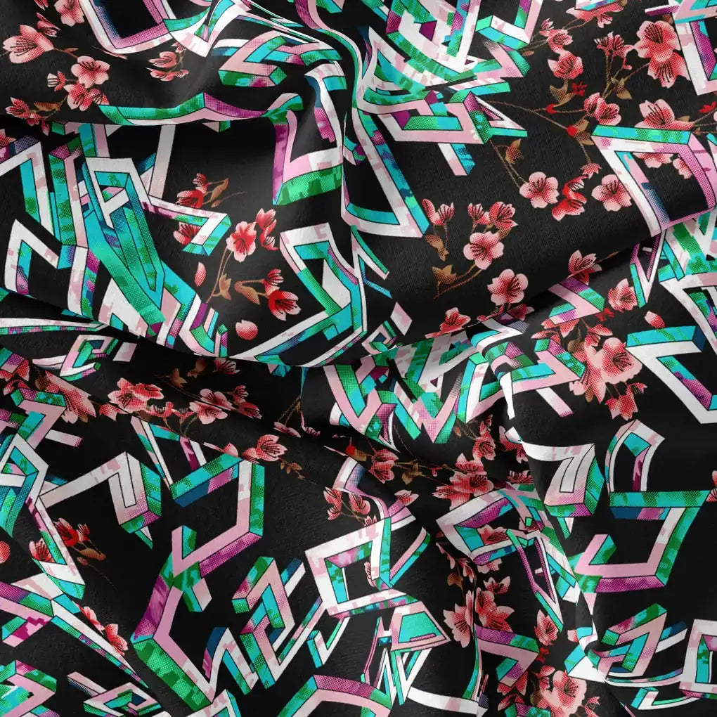 Morden Colourful Chintz Flower With Creative Box Digital Printed Fabric - Pure Chinon