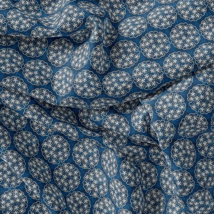 New Multi Round Star Blue Digital Printed Fabric - Rayon