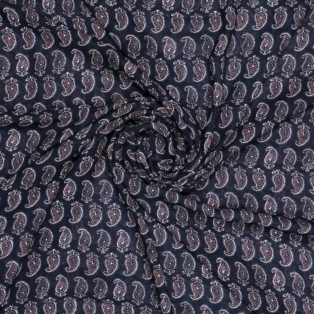 Are you looking for a unique fabric for your next project? FAB VOGUE Studio offers the perfect solution with its Paisley Seamless over Black Weightless Gown Printed Fabric. This beautiful fabric is made of high-quality polyester, making it lightweight and comfortable. The classic paisley pattern is printed in black for a sophisticated look that will draw attention to any project. With its seamless design, this fabric is perfect for creating garments, accessories, and more. Shop now at FAB VOGUE Studio and get the perfect fabric for your next project.