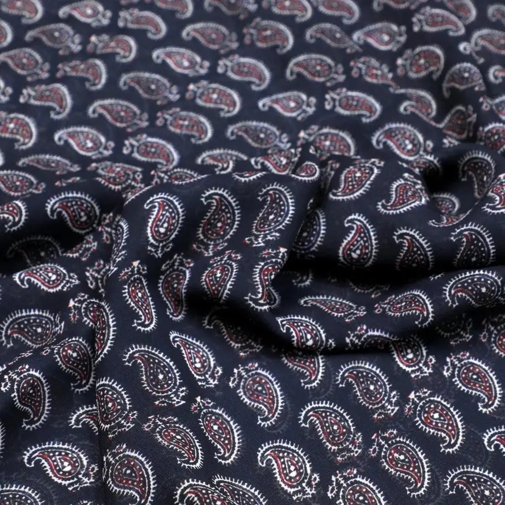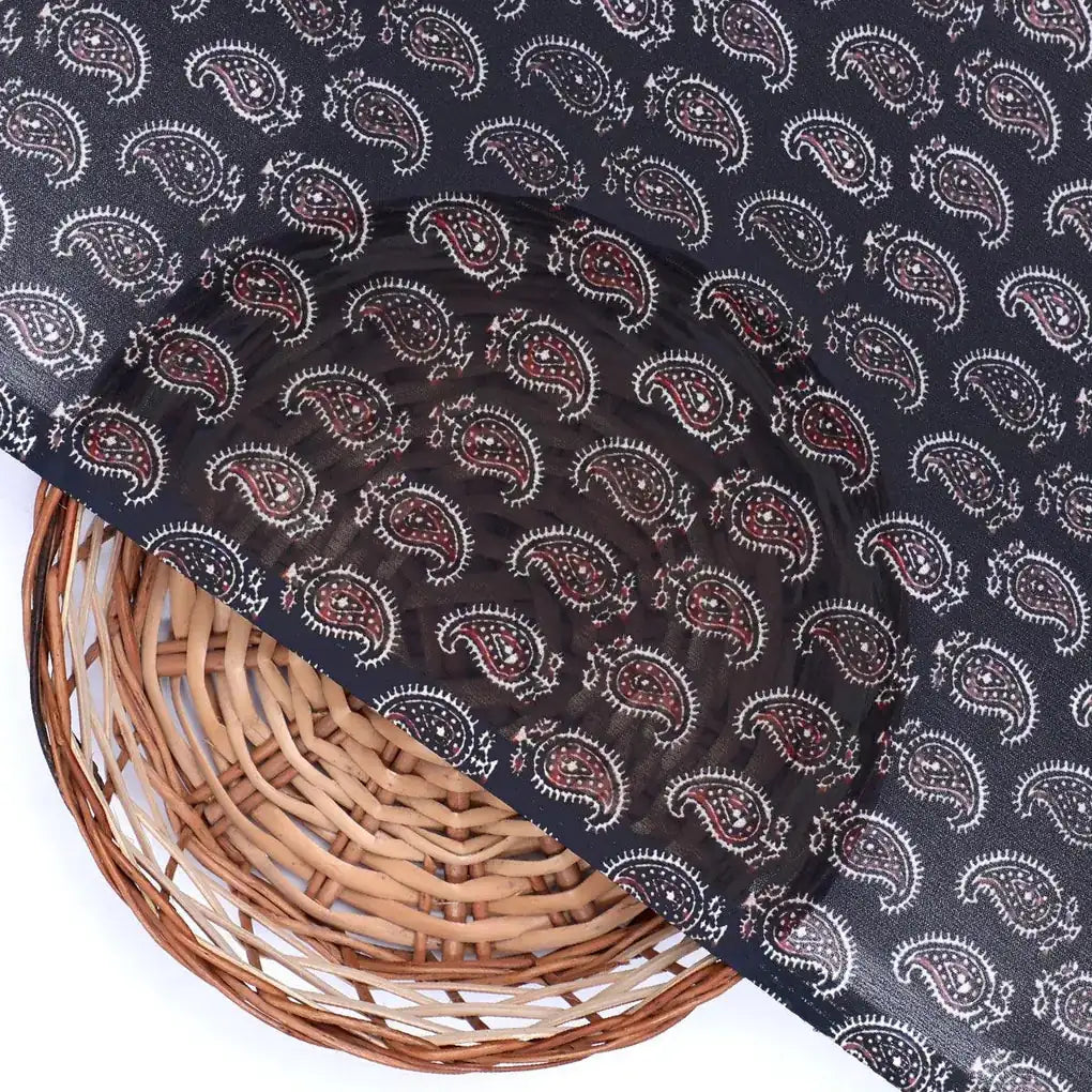 Paisley Seamless over Black Digital Printed Fabric