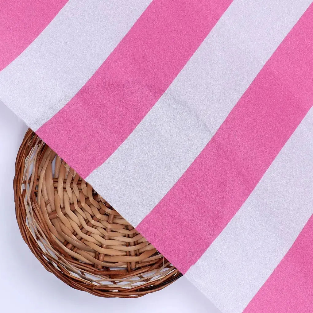 Peach And Pink Stripes Digital Printed Fabric - Crepe