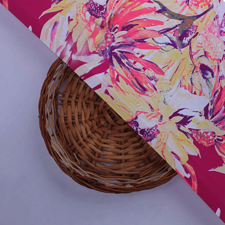 Pink Multicolor Floral Printed Japan Satin Fabric