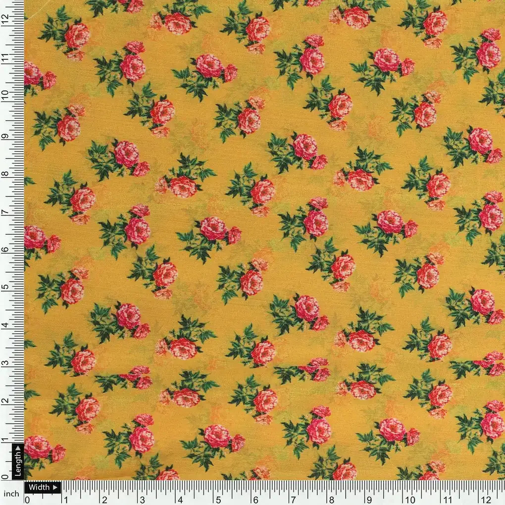 Pink Tiny Flower With Yellow Digital Printed Fabric - Kora Silk