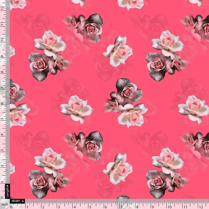 Pinkish Background With Valvet Roses Digital Printed Fabric - Pure Cotton