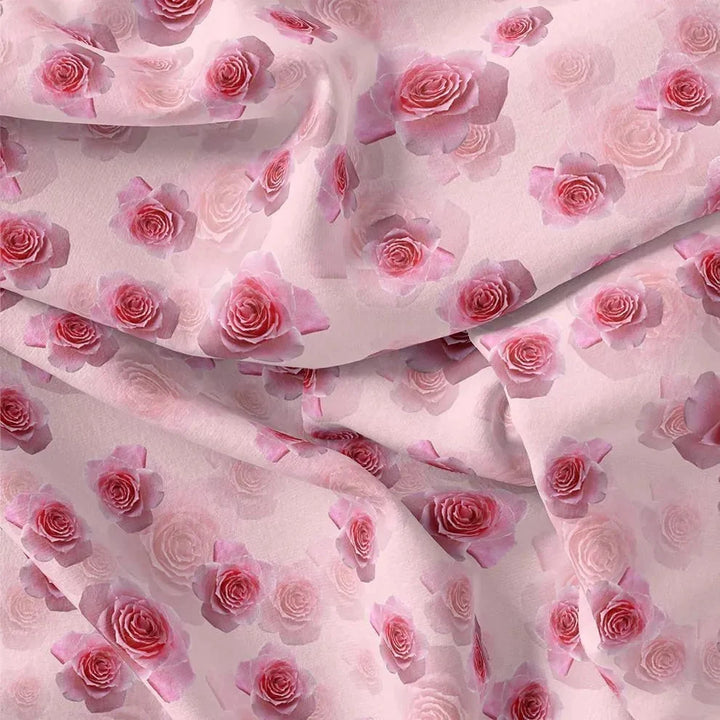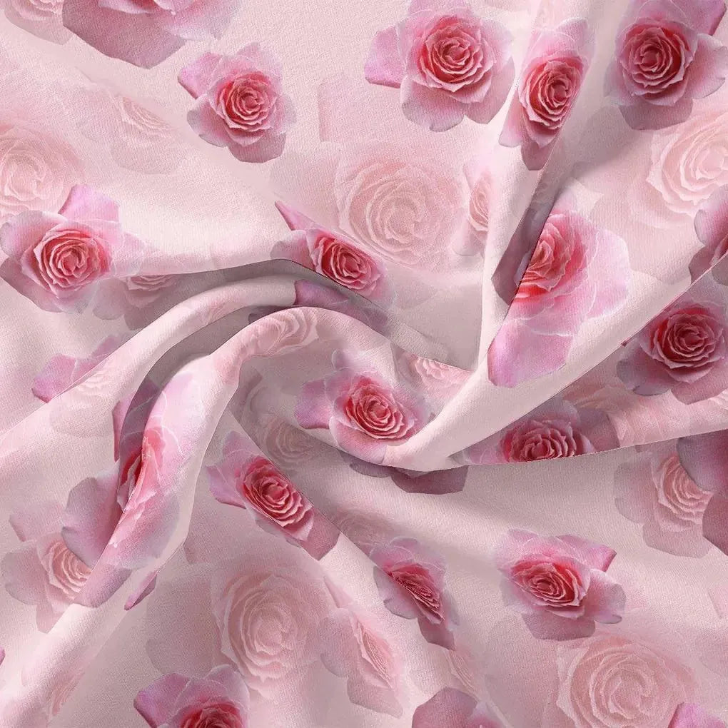 Pinkish Rose Allover Digital Printed Fabric - Pure Cotton