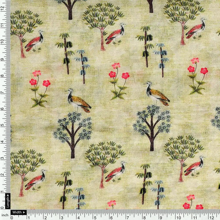 Pista Chinoiserie With Birds Digital Printed Fabric - Pure Muslin