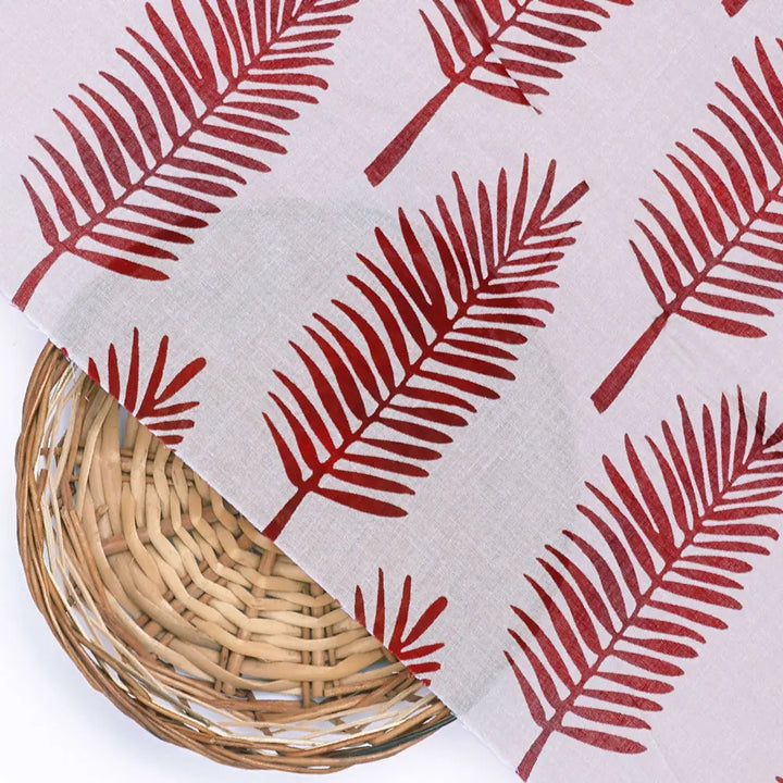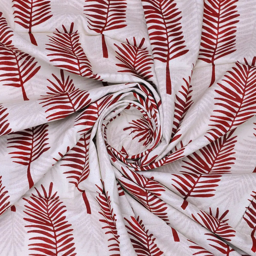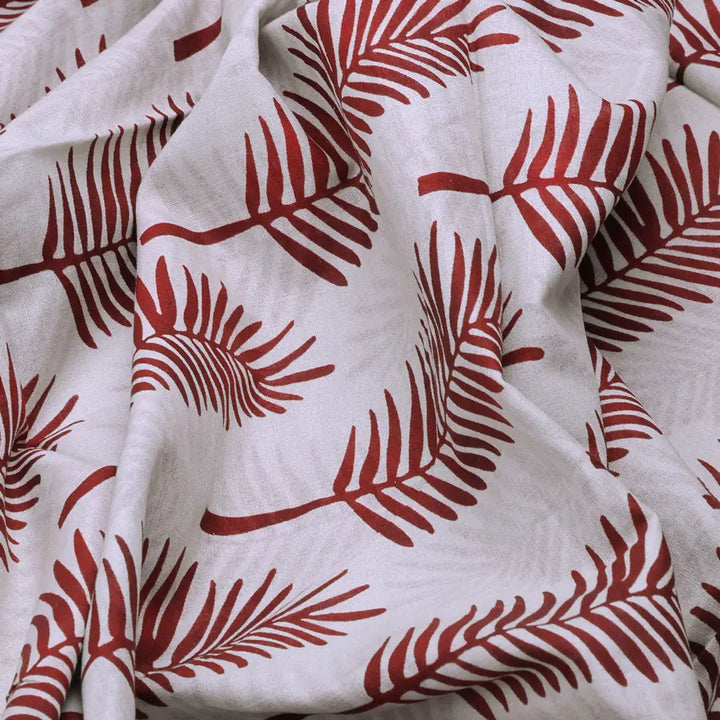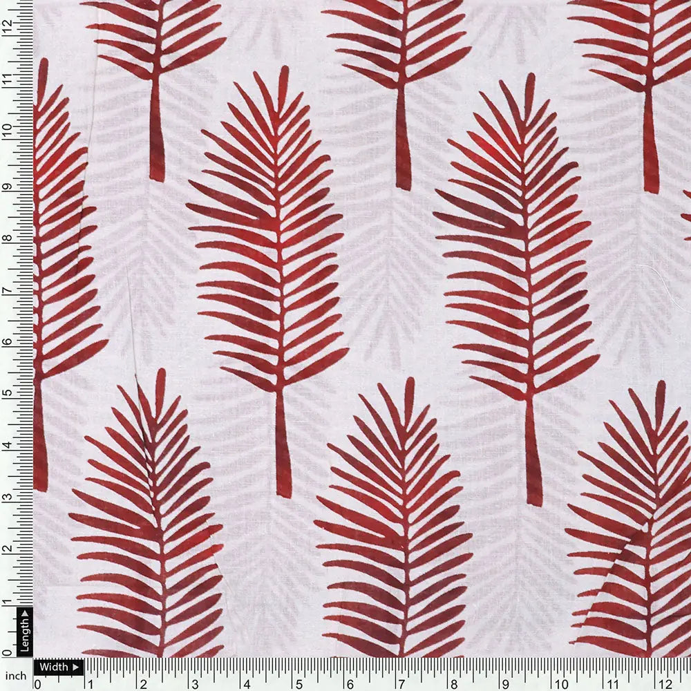 Red Pedate Leafs Digital Printed Fabric - Pure Cotton