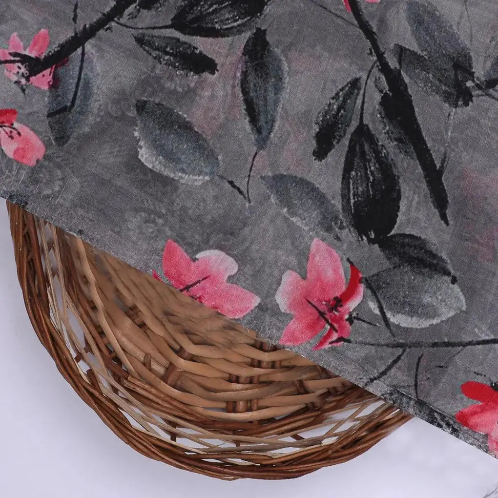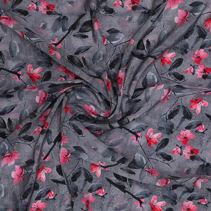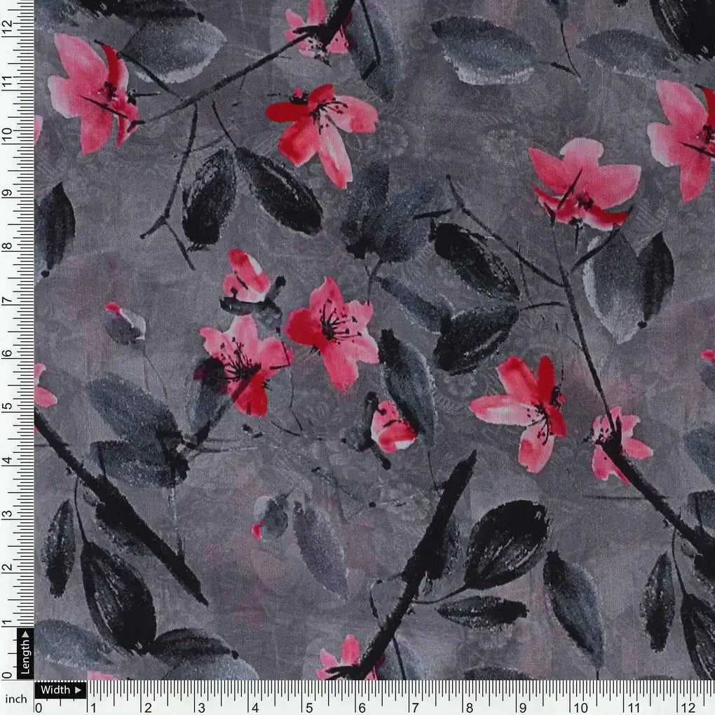 Rustic Looked Pink Flower Digital Printed Fabric - Kora Silk