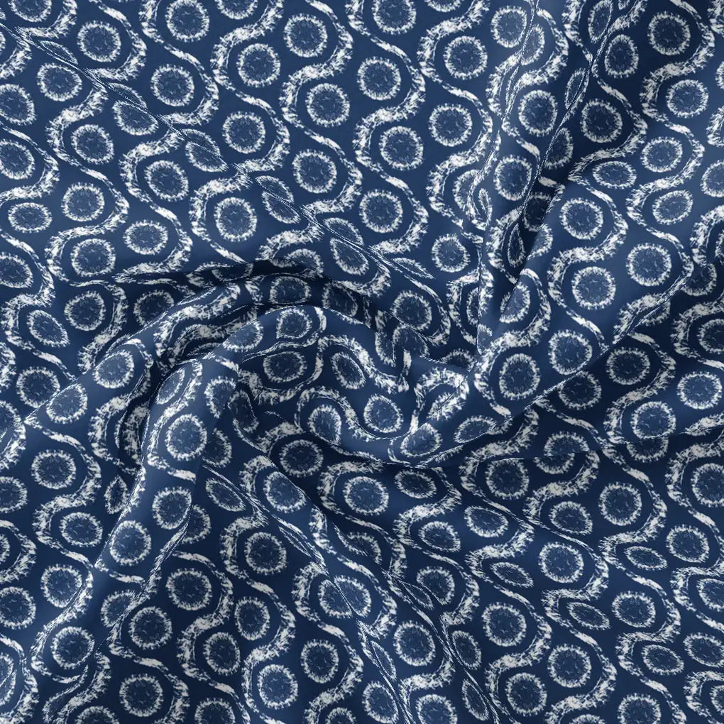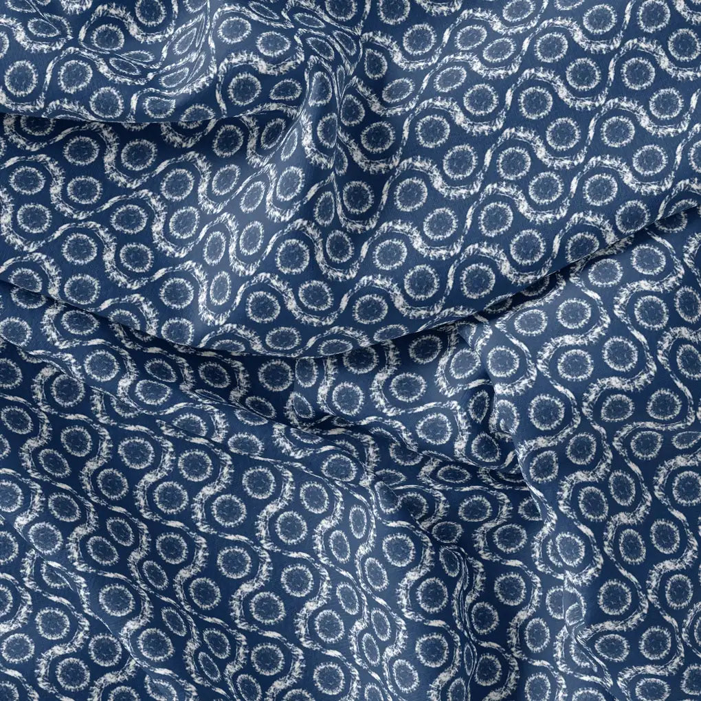 Seamless Vermicular Pattern With Blue Colour Digital Printed Fabric