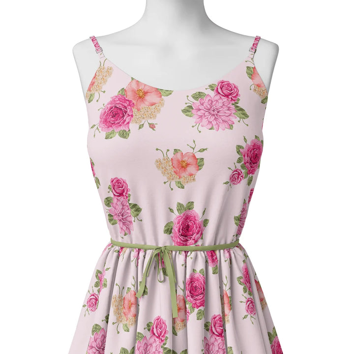Simple And Beautiful Roses With Pink Lotus Digital Printed Fabric - Japan Satin
