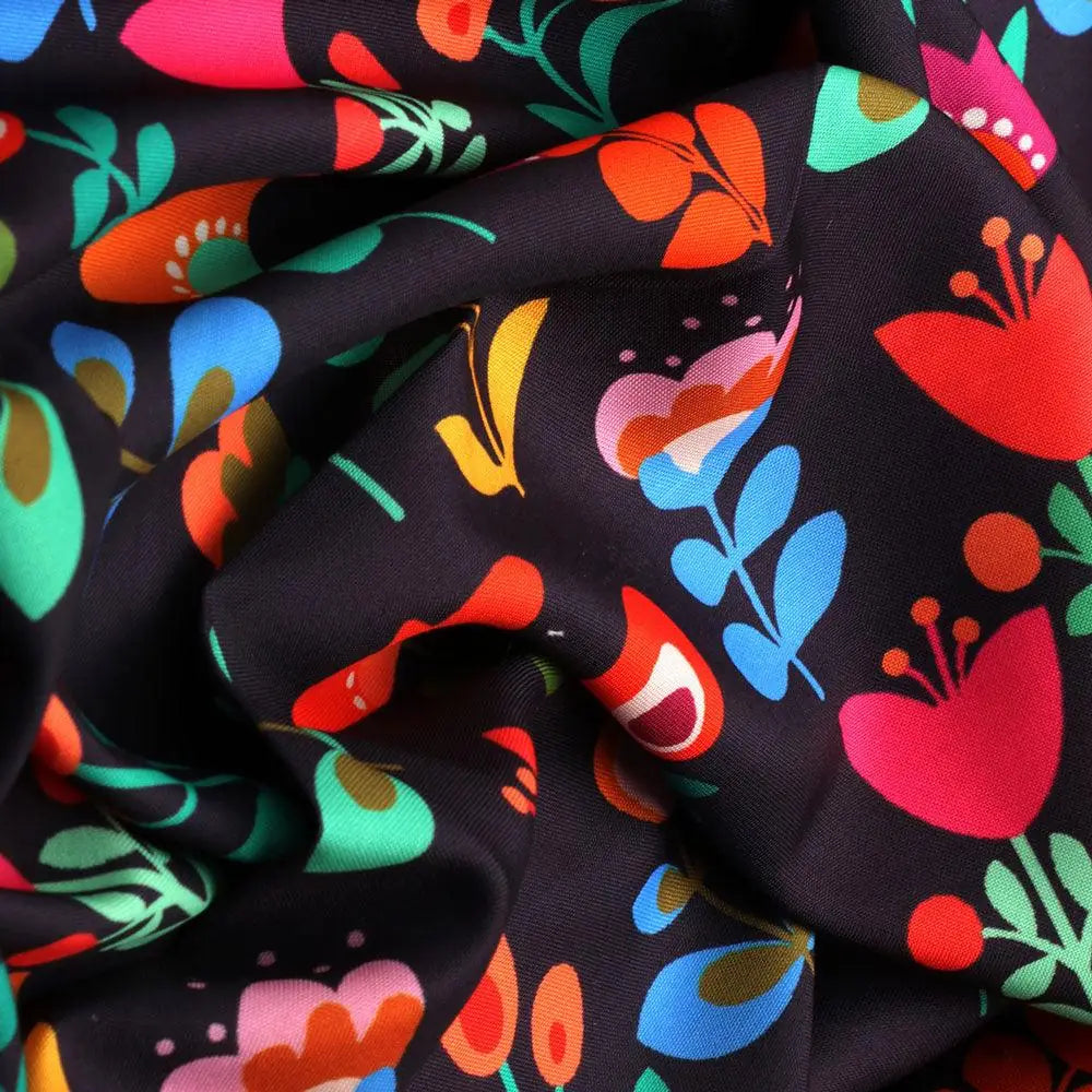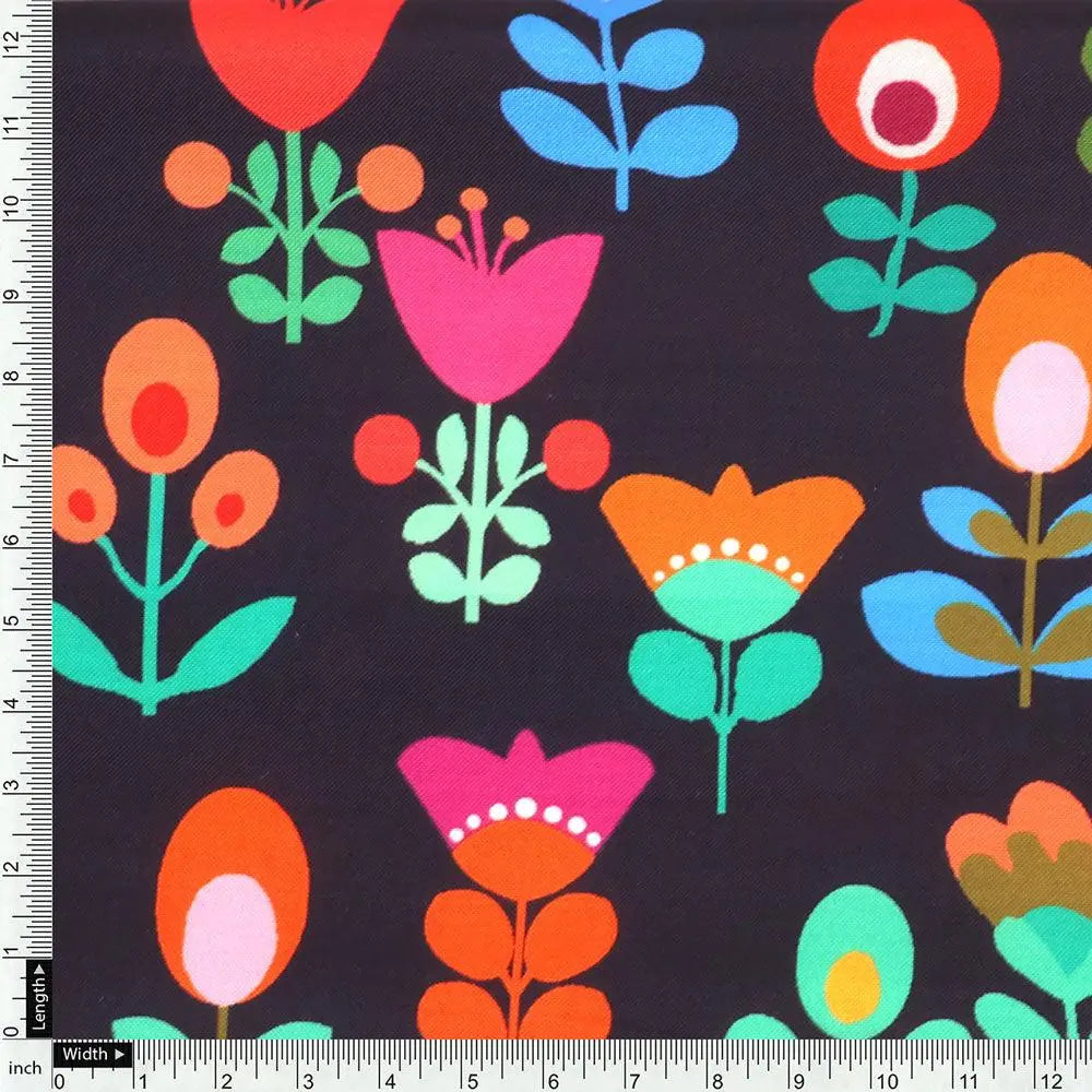 Sketchy Flowers Pattern Digital Printed Fabric - Rayon