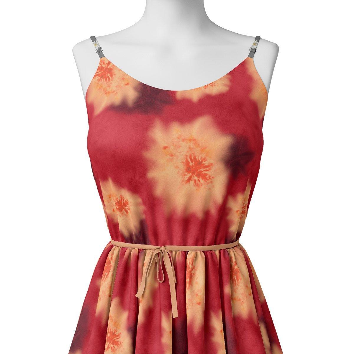 Spotted Red And Blackish Flower Digital Printed Fabric - Organza